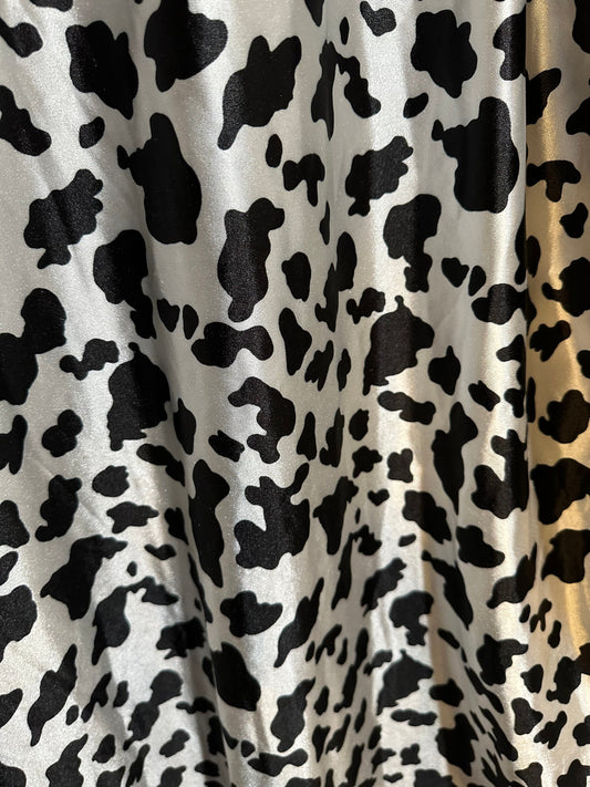 Exotic Cow design print on super shiny satin spandex 4-way stretch 58/60” High quality spandex fabrics by AlexLAFabrics