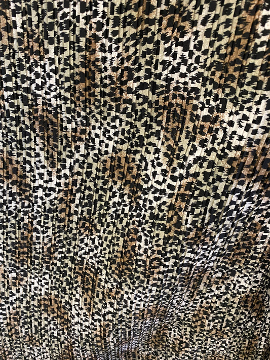 Exotic animal print leopard design print on pleated poly satin fabric 44/45” Sold by the YD. Ships Worldwide from Los Angeles California USA