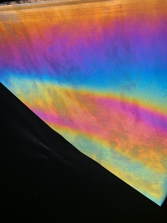 Reflective heavy nylon spandex rainbow design 2way stretch 44/45" Sold by the YD. Ships worldwide from Los Angeles California USA.