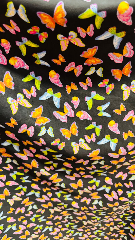 Butterfly design Black/Rainbow on spandex Ultra suede 2-way stretch 58/60” High quality fabrics by AlexLAFabrics
