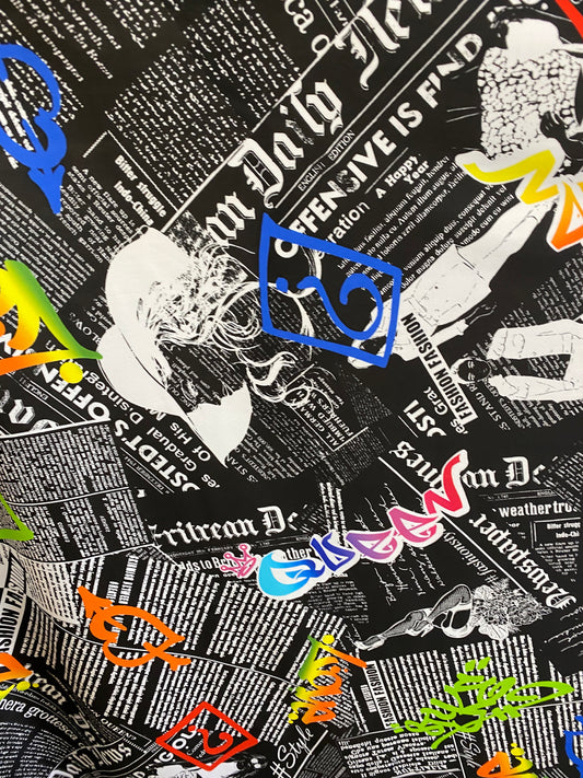 New modern brand print design print on super techno 4-way stretch 58/60” Sold by the YD. Ships worldwide from Los Angeles California USA.