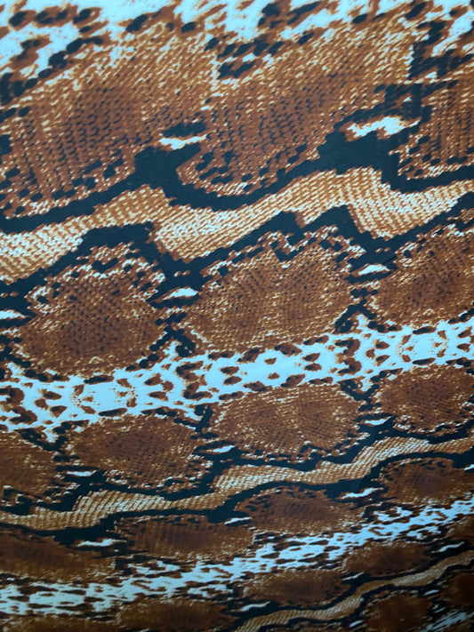 New exotic snake design taupe/black/white print on poly techno 2-way stretch medium weight 58/60” Sold by the YD. Ships worldwide