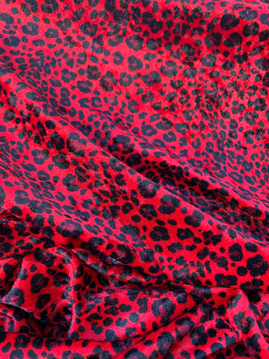 New Leopard design Yellow/Black & Red/Black exotic animal print on 2-way stretch velvet 58/60”
