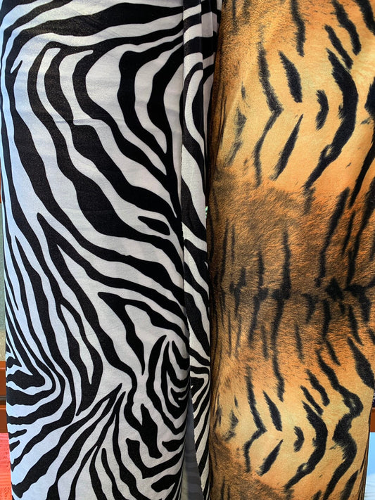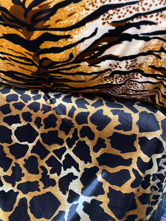 Heavy stretch velvet multi animal print 4way stretch 58/60" Sold by the YD. Ships worldwide from Los Angeles California USA.