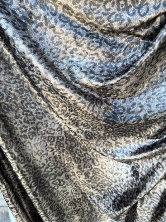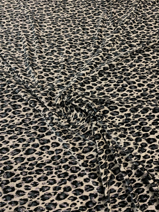 Leopard design with silver/glitter print on velvet 420gsm 4way stretch 58/60” Sold by the YD. Ships worldwide from Los Angeles California US