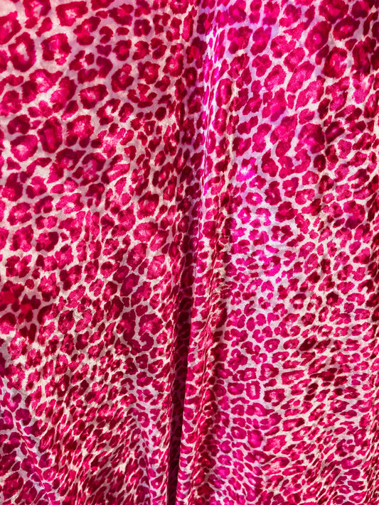 New Exotic Cheetah design pink color print on great quality of stretch velvet 4-way stretch 58/60” Sold by the YD. Ships Worldwide from L. A