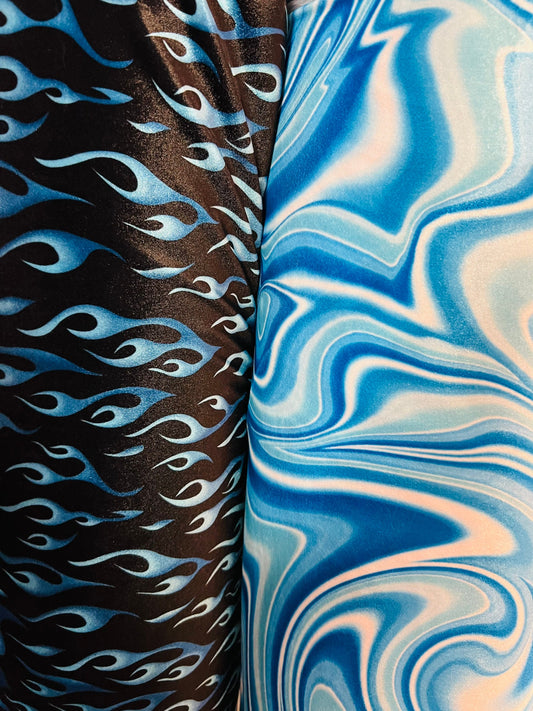 Flame and modern abstract lava design print on best quality of stretch velvet 4-way stretch 58/60” Sold by the YD. Ships Worldwide from L.A