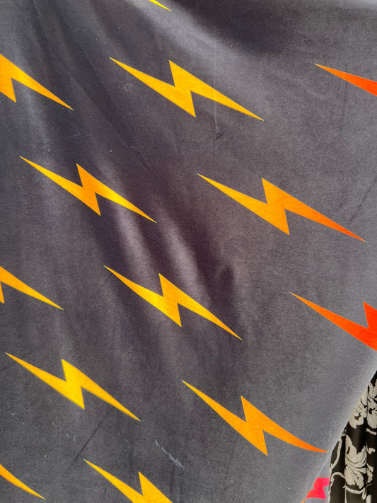 Flash design black/red/pink print on great quality of stretch velvet 4-way stretch 58/60” Sold by the YD. Ships Worldwide from Los Angeles