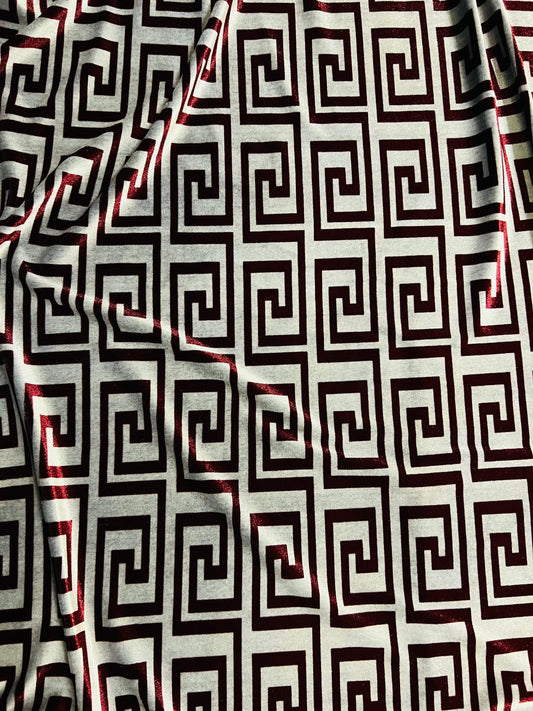 New modern Fashion brand design Silver Merlot print on great quality of stretch velvet 4-way stretch 58/60” Sold by the YD.