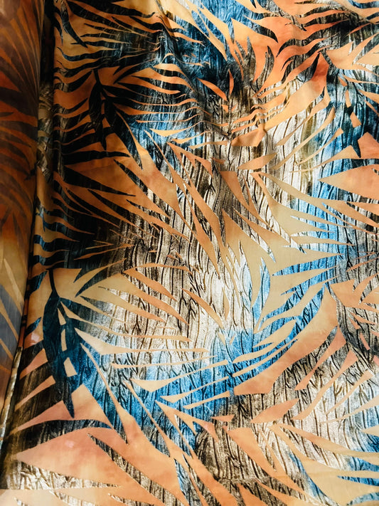 Luxury burnout stretch velvet leaves design tie dye velvet 4-way stretch 58/60” Sold by the YD. Ships Worldwide from Los Angeles California