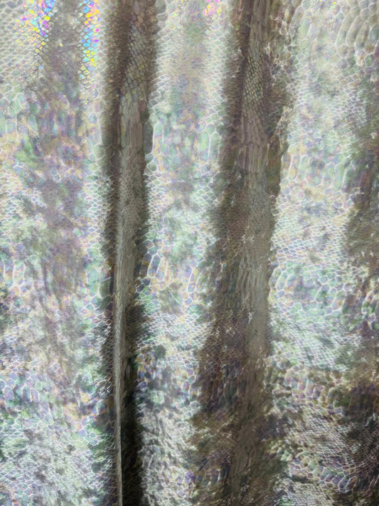 Ilusión exotic snake design on stretch velvet with hologram foil 4-way stretch 58/60”