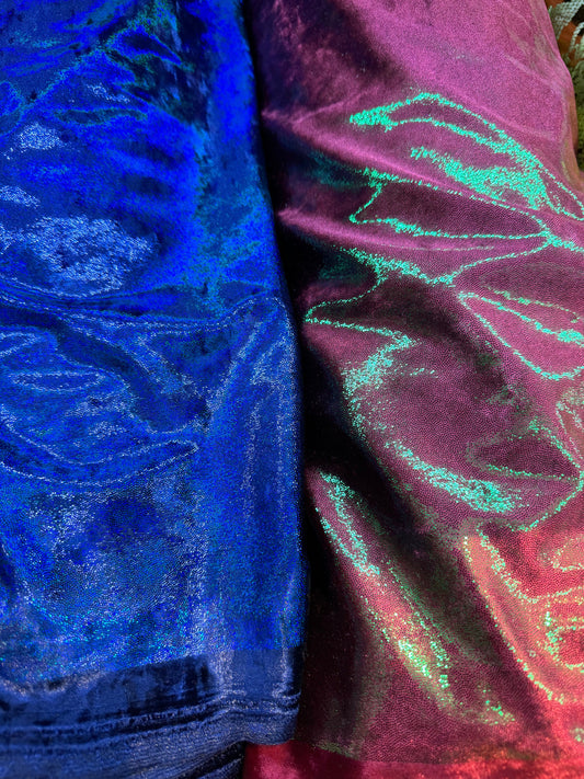 Luxury Iridescent foggy foil on stretch velvet fabric 4-way stretch 58/60” High quality fabrics by AlexLAFabrics