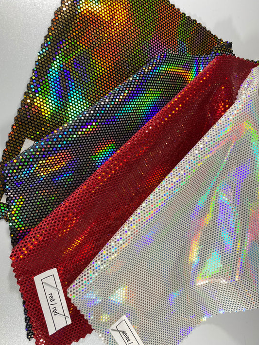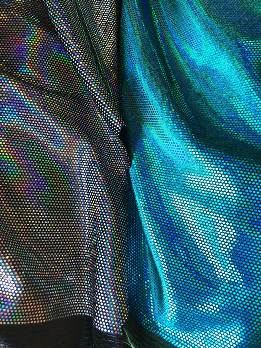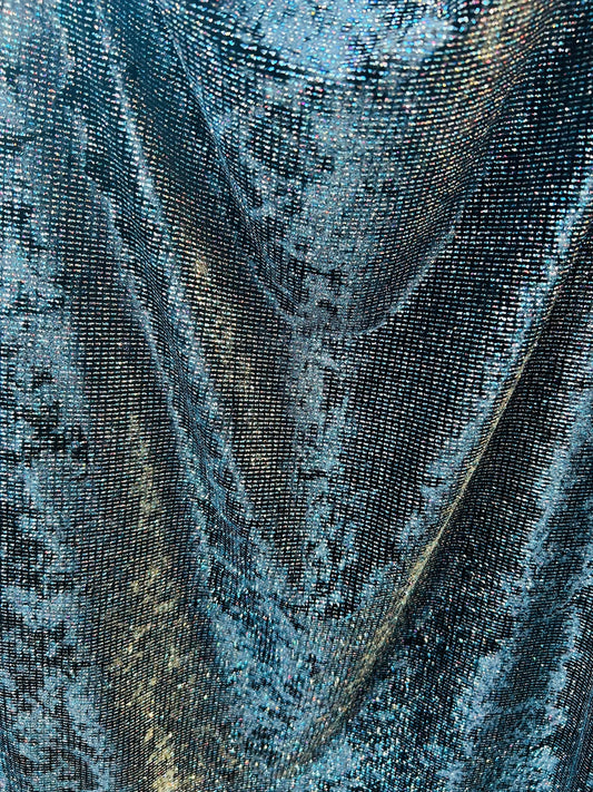 New heavy velvet with clear iridescent foil pebble hologram 4way stretch 58/60" Sold by the YD. Ships worldwide from Los Angeles California.