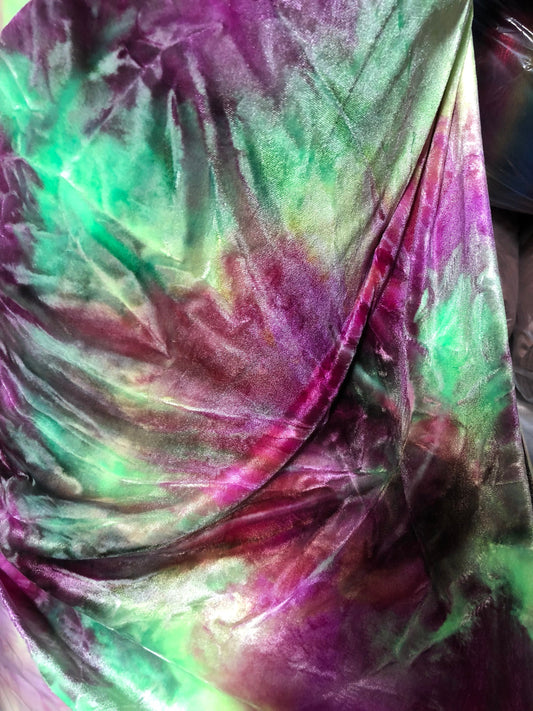 New heavy Stretch velvet tie dye print Poly Spandex 58/60" Sold by the YD. Ships worldwide from Los Angeles California USA.