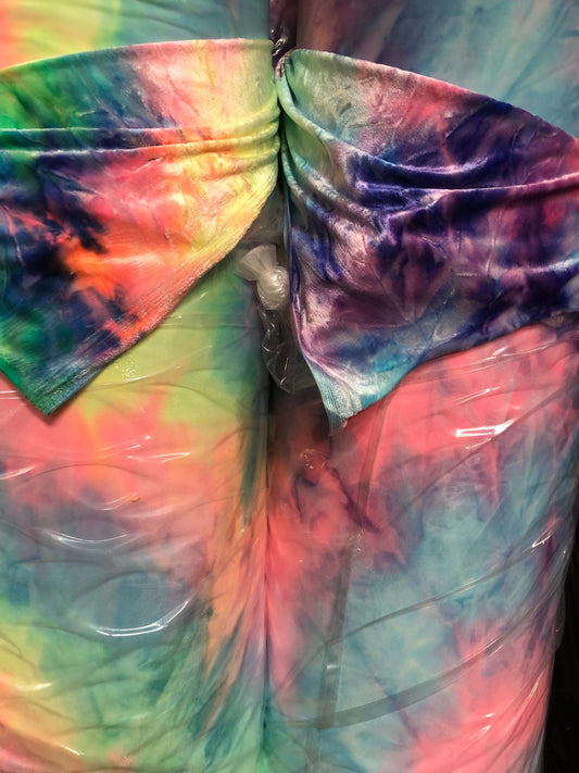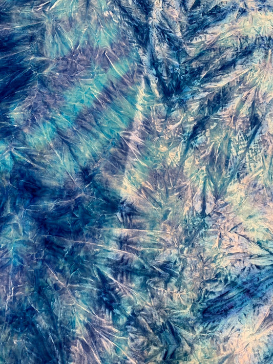 New heavy Stretch velvet tie dye print Poly Spandex 4 way stretch 58/60" Sold by the YD. Ships worldwide from Los Angeles California USA.