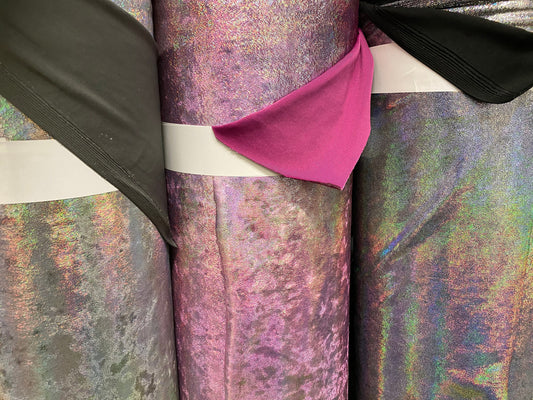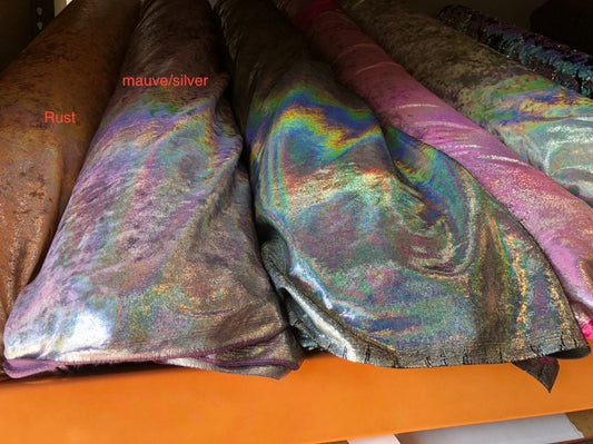 New legacy Oil slick and photo print great quality of stretch velvet 4-way stretch with iridescent foil all over 58/60”