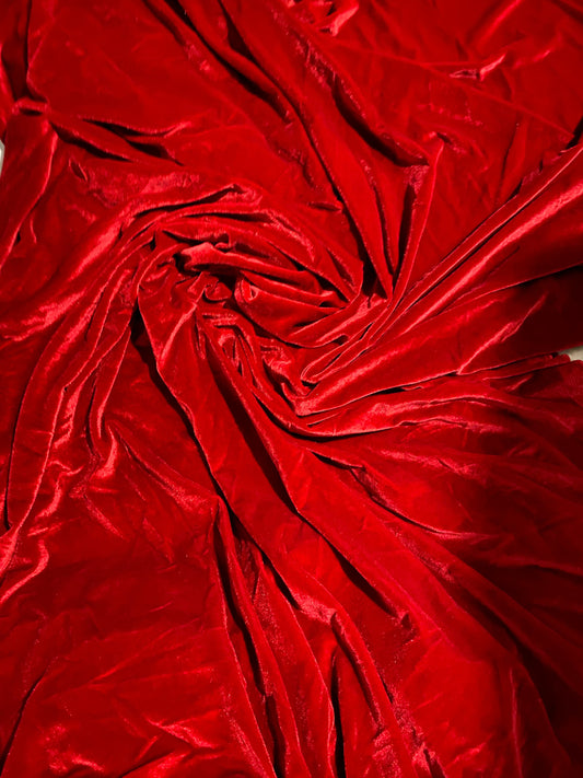 New heavy red velvet 420gsm 4-way stretch 58/60” Sold by the YD. Ships worldwide from Los Angeles California USA.