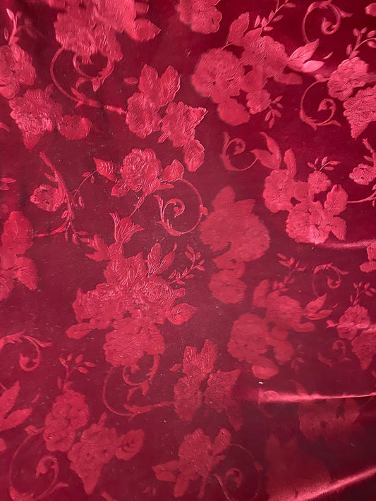 New Italian embossed velvet flower design merlot color luxury 4-way stretch velvet 58/60” Sold by the YD. Ships worldwide from Los Angeles.