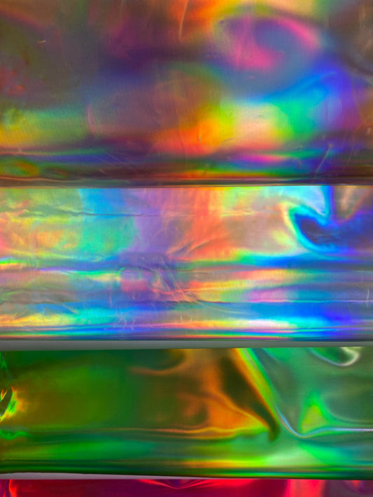 New Luxury Iridescent vinyl medium weight 2-way stretch 58/60”Sold by the YD. Ships worldwide from Los Angeles California USA.