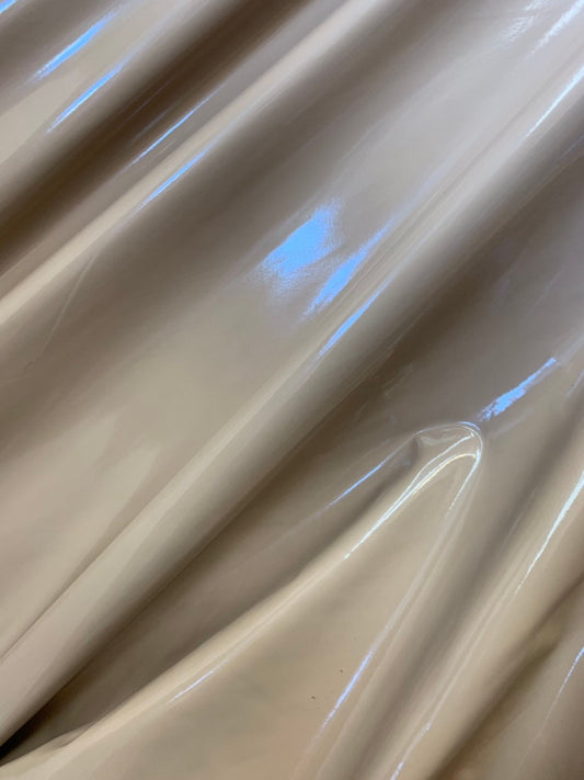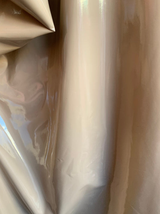 Latex spandex vinyl shining taupe color 4way stretch 58/60" Sold by the YD. Ships worldwide from Los Angeles California USA.