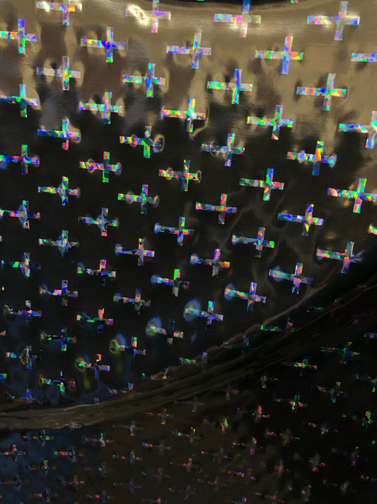 Heavy stretch black vynyl cross design 4 way street 58/60" Sold by the YD. Ships worldwide from Los Ángeles California USA.