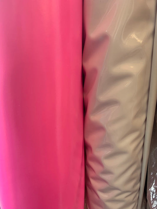 Shiny Pink Latex nylon spandex 4way stretch 58/60” Sold by the YD. Ships worldwide from Los Angeles California USA.