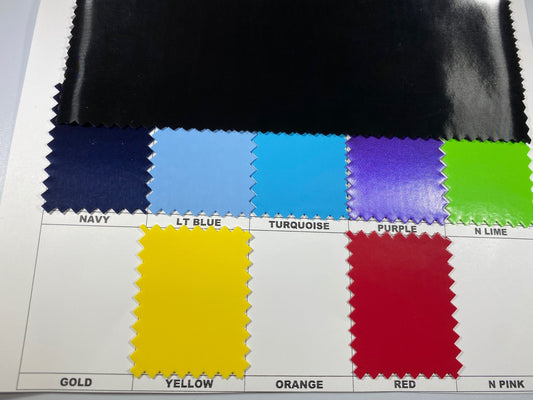 New super shiny stretch vinyl nylon spandex latex 4-way stretch 58/60” Sold by the YD. Ships Worldwide from Los Angeles California USA.