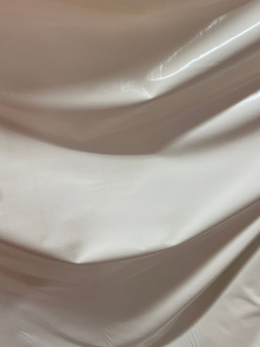 Shiny Off white Latex nylon spandex 4way stretch 58/60” Sold by the YD. Ships worldwide from Los Angeles California USA.