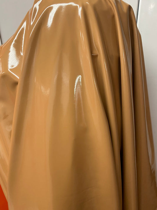 Shiny Latex Cappuccino color nylon spandex 4way stretch 58/60” Sold by the YD. Ships worldwide from Los Angeles California USA.