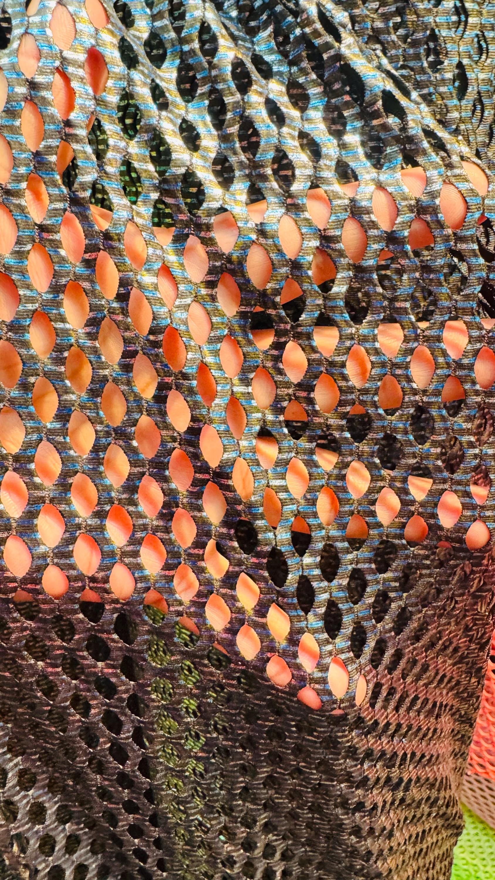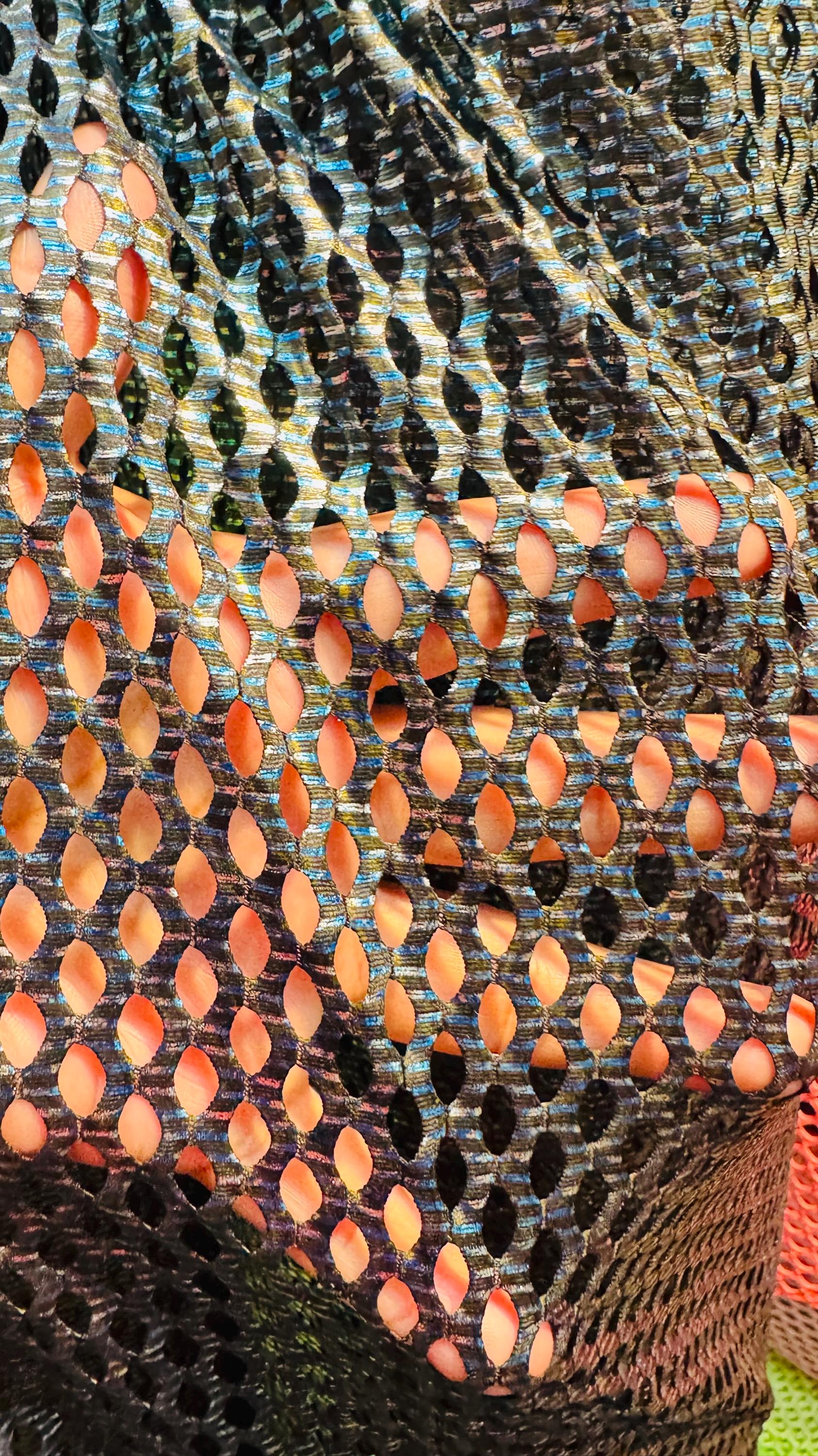 3D Skin snake design print on fishnet metallic diamond mesh 4-way stretch 58/60” Sold by the YD. Ships Worldwide from Los Angeles California USA. High quality fabrics by AlexLAFabrics