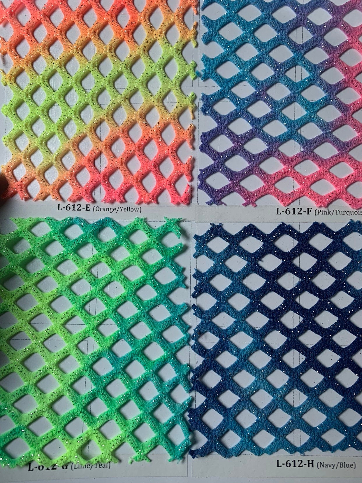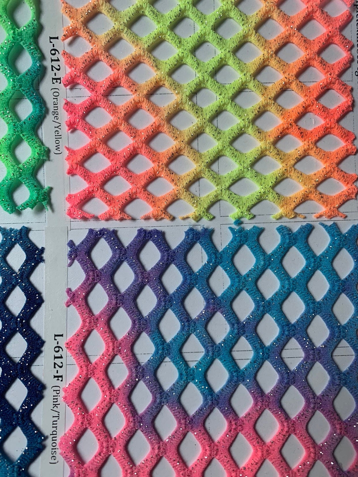 Big fishnet Diamond mesh tie dye w/silver glitters 4way stretch 58/60" Sold by the YD. Ships worldwide from Los Angeles California USA.