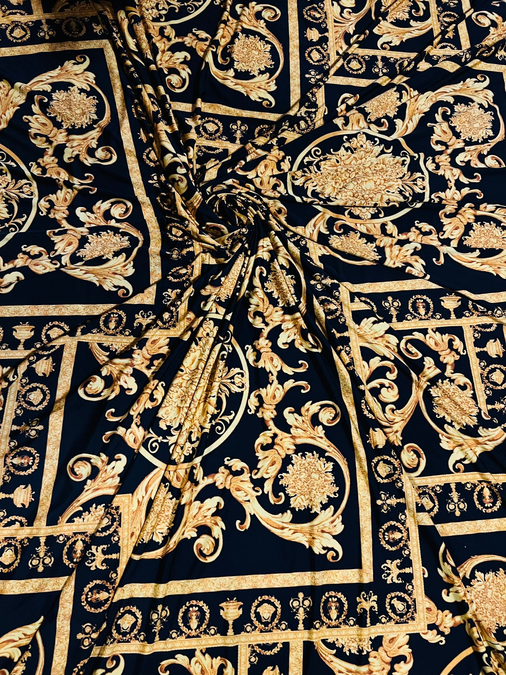 Brand design print on poly spandex 2-way stretch 58/60” Sold by the YD. Ships Worldwide from Los Angeles California USA.