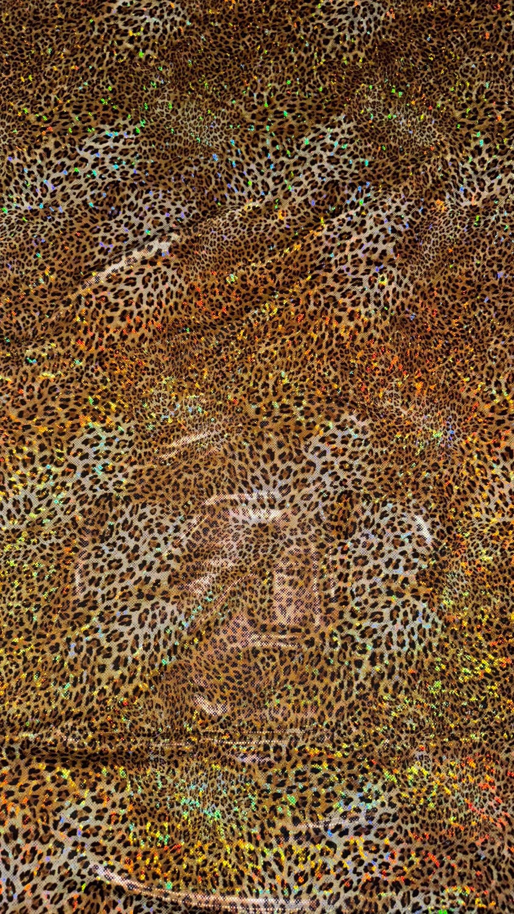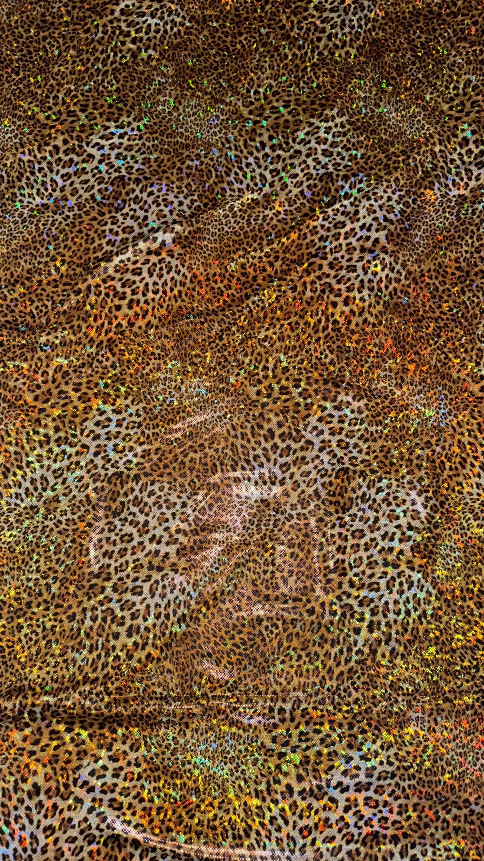 Cheetah hologram design New shattered glass hologram metallic nylon spandex 4-way stretch 58/60” Sold by the YD. Ships worldwide from Los Angeles California USA. High quality fabrics by AlexLAFabrics