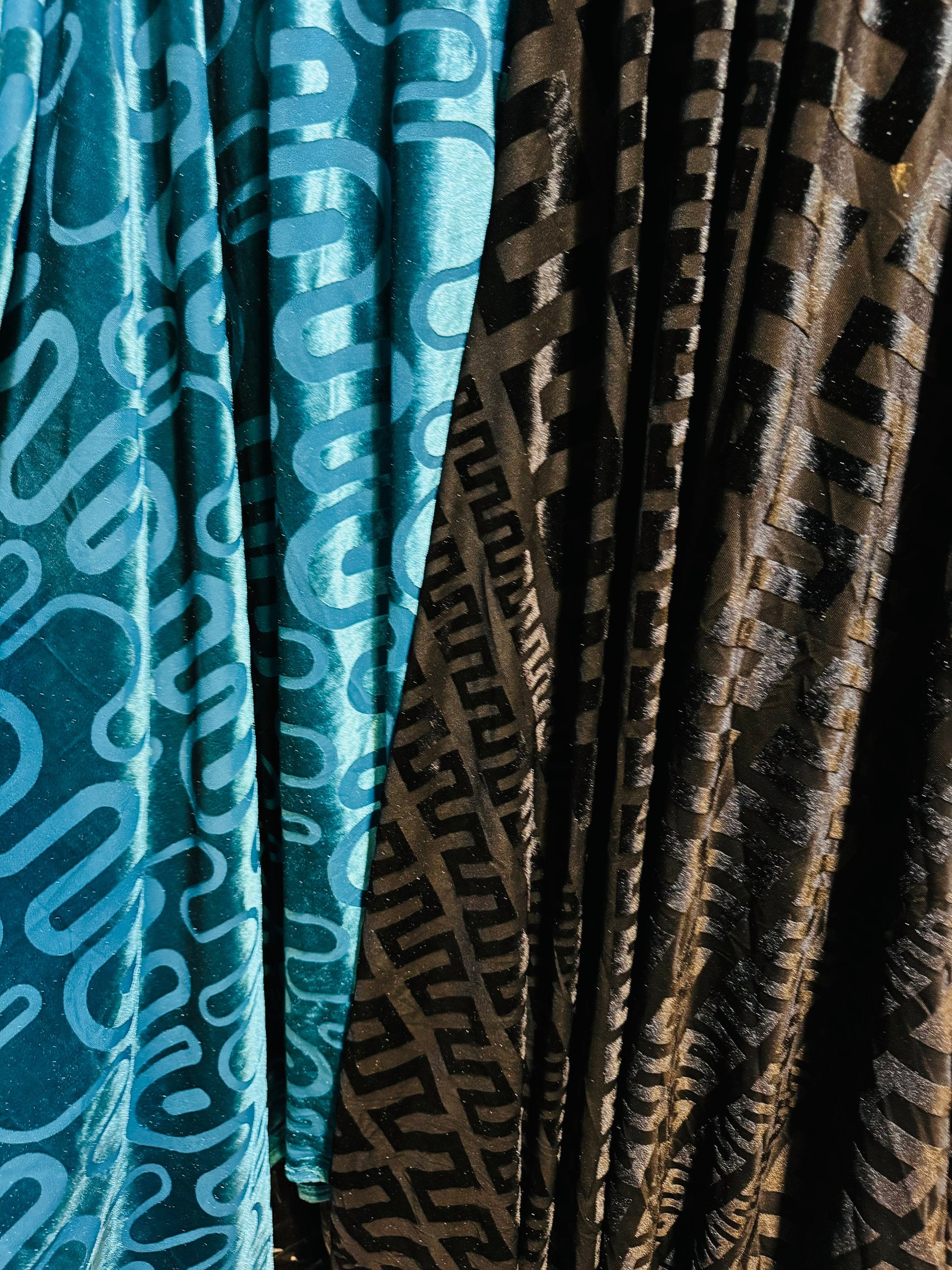 Deluxe Geometric fashion design high quality of stretch velvet 4-way 58/60” Sold by the YD. Ships worldwide from Los Angeles California USA.