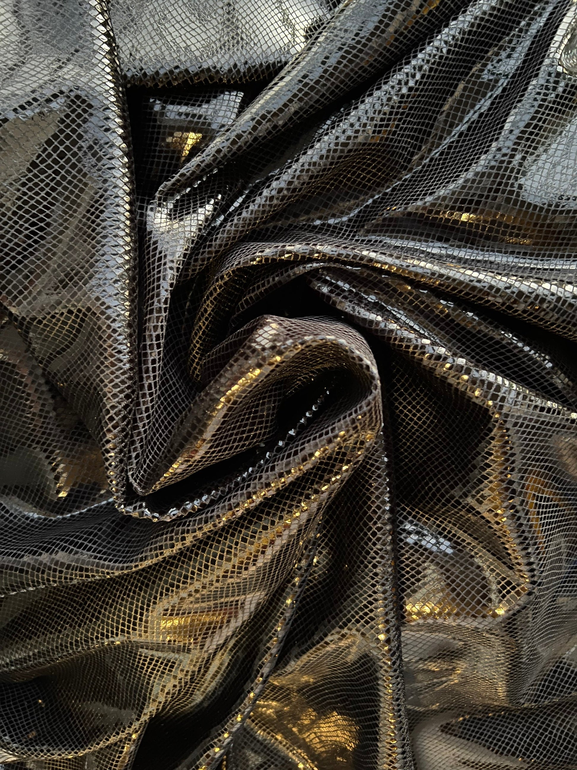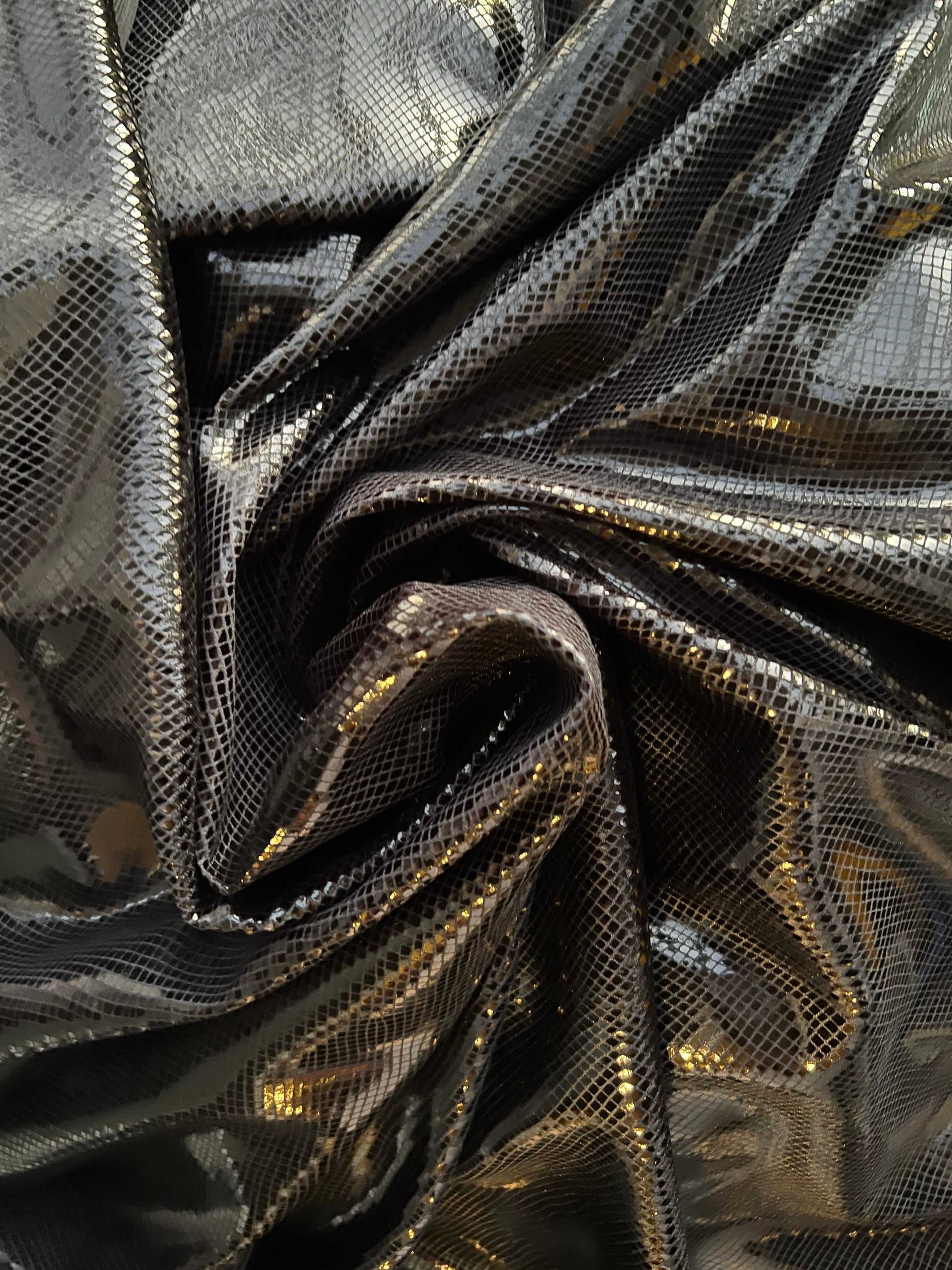 Dragón scales design super shiny stretch velvet with foil 4-way stretch 58/60” Sold by the YD. Ships Worldwide from Los Angeles California