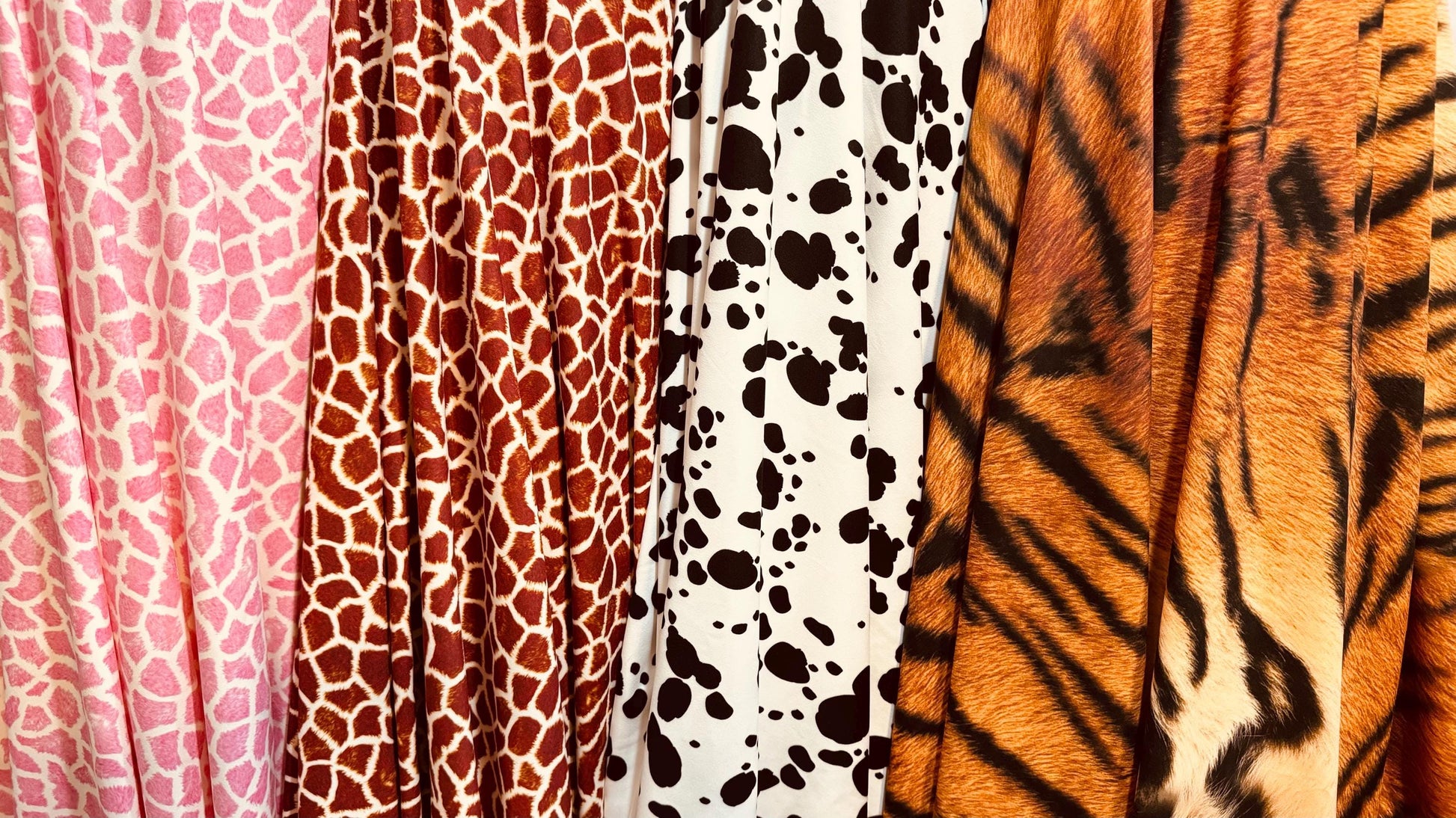 Exotic Animals prints designs High performance nylon spandex 4-way stretch 58/60” Sold by the YD. Ships worldwide from Los Angeles California USA.