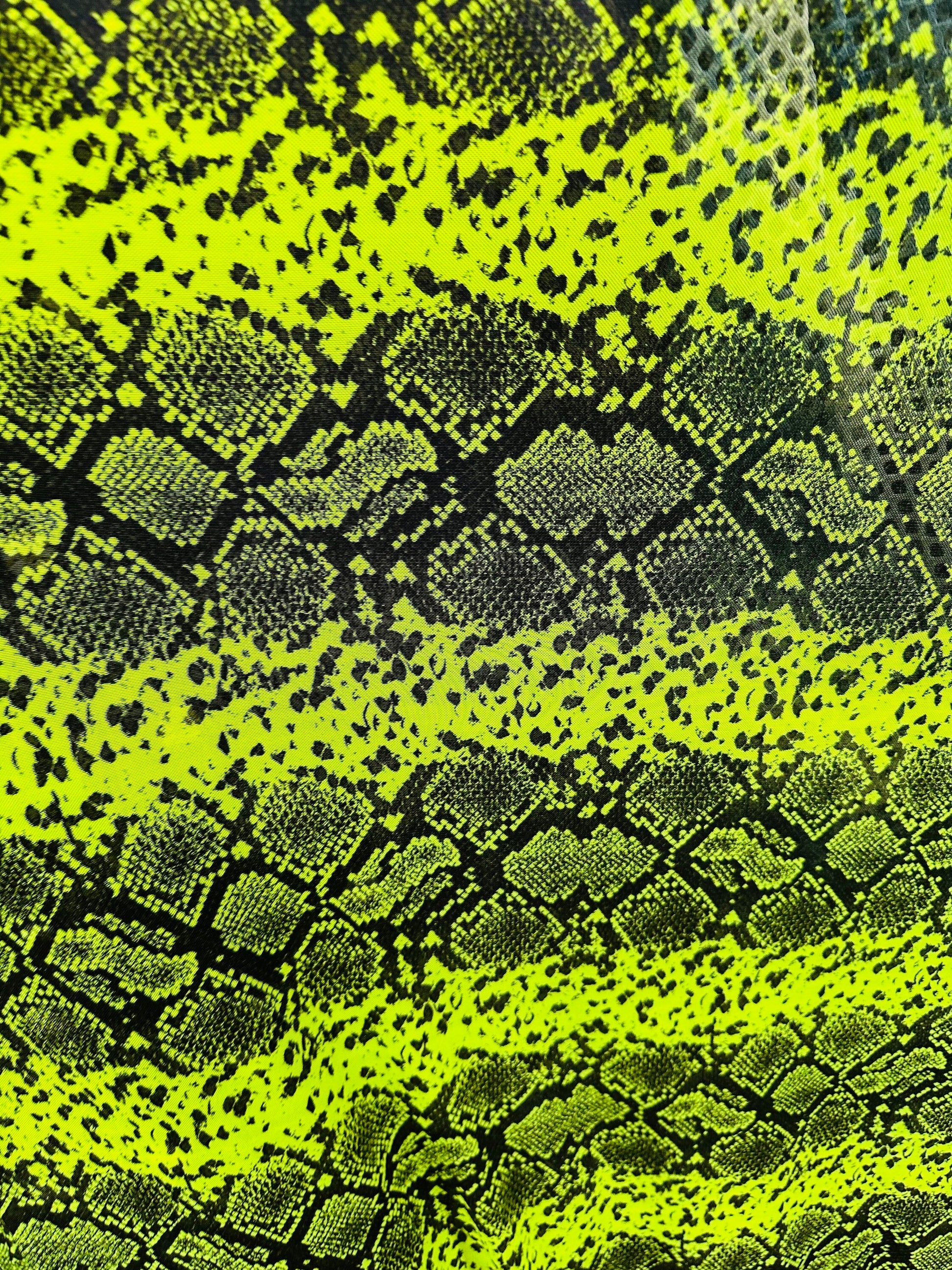 Exotic Boa snake design print on great quality of power mesh 4-way stretch 58/60” Sold by the YD. Ships worldwide from L.A