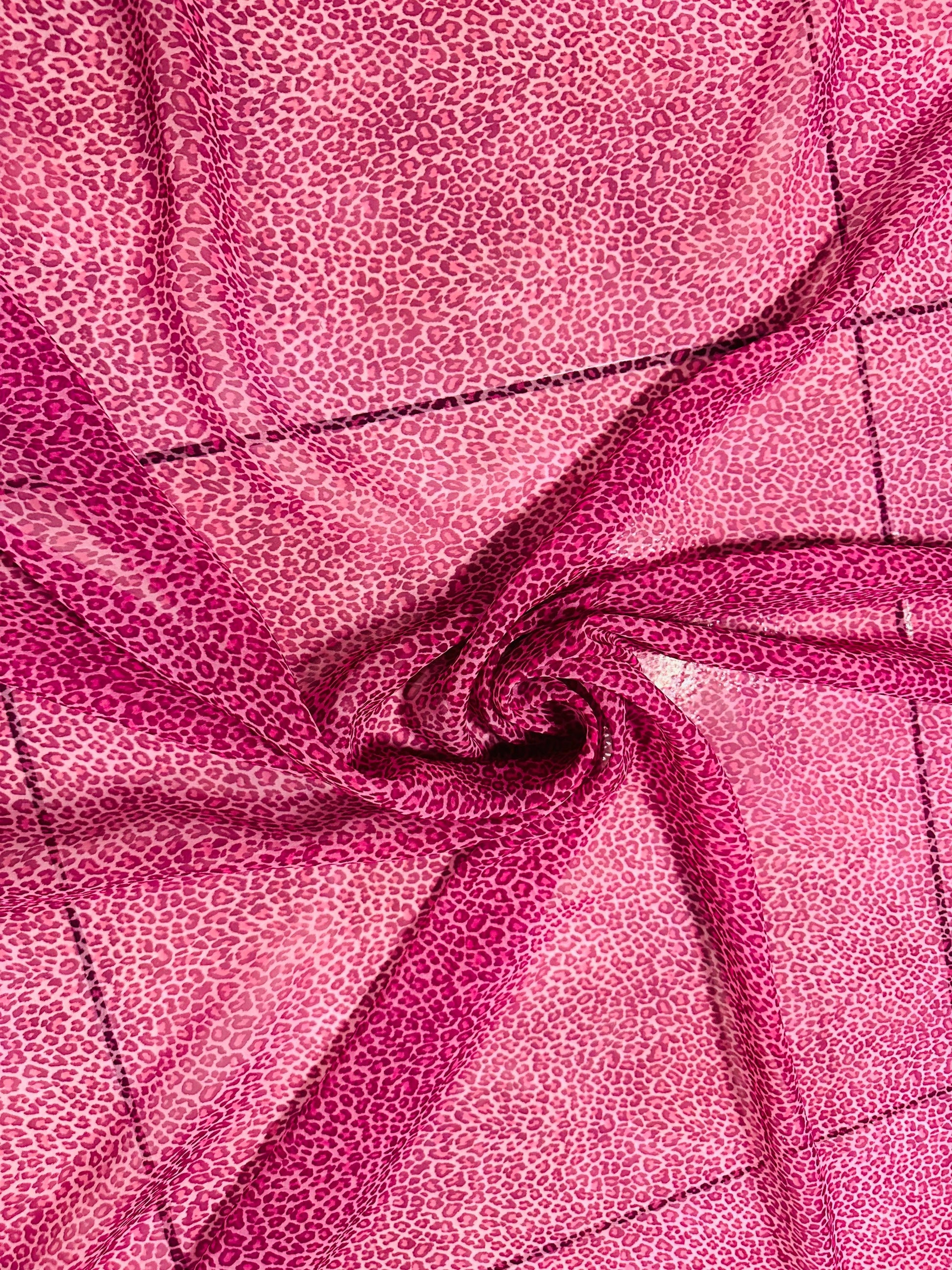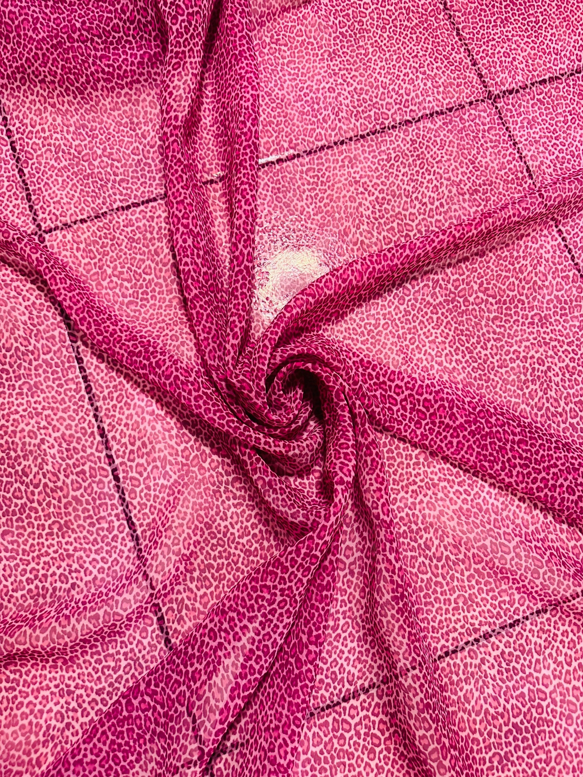Exotic Cheetah design print on great quality of poly spandex 4-way stretch and poly chiffon non stretch 58/60” Sold by the YD.