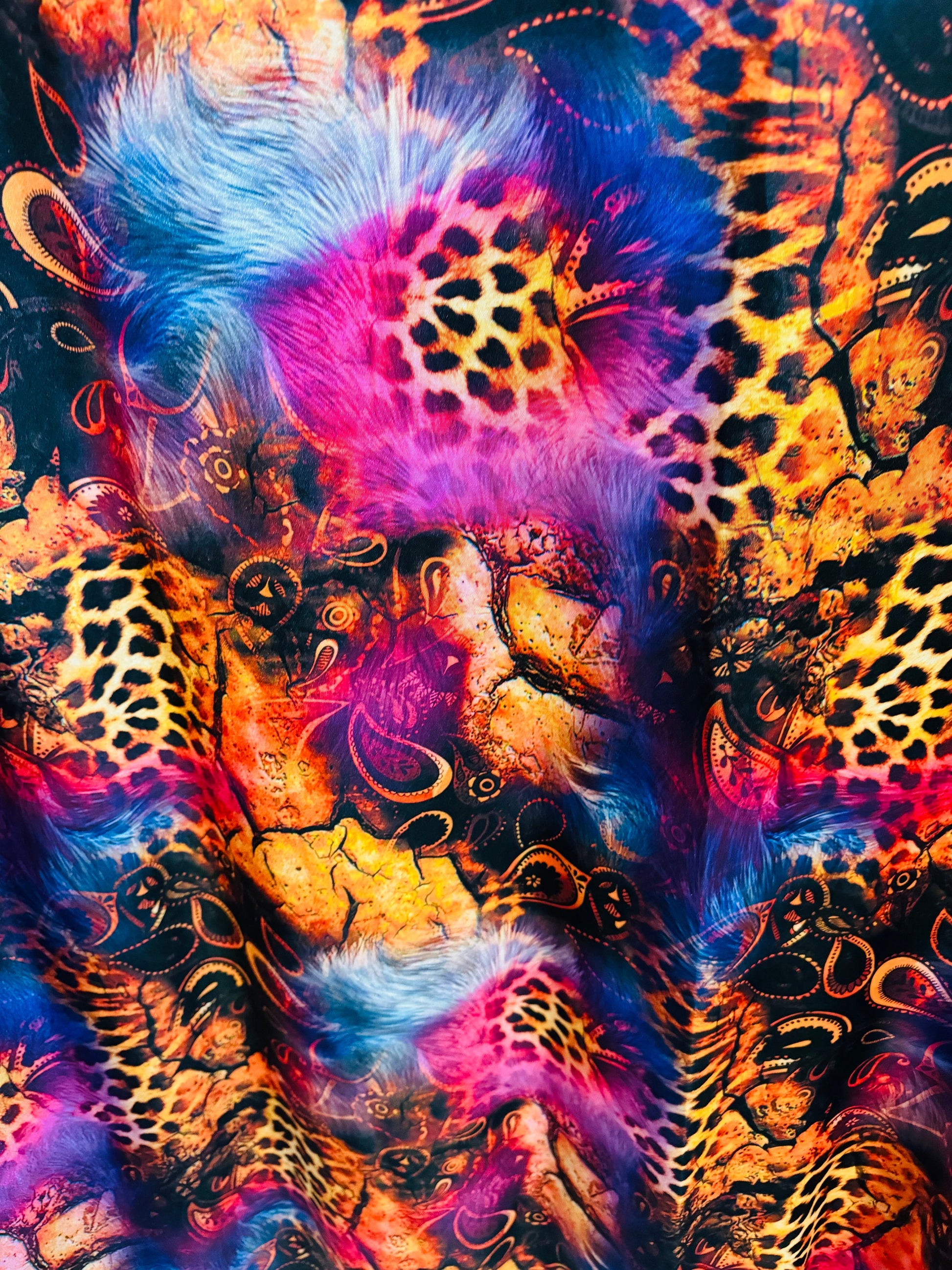 Exotic Leopard abstract design print on best quality of nylon spandex 4-way stretch 58/60” Sold by the YD. Ships worldwide from Los Angeles California USA. High Quality fabrics by AlexLAFabrics