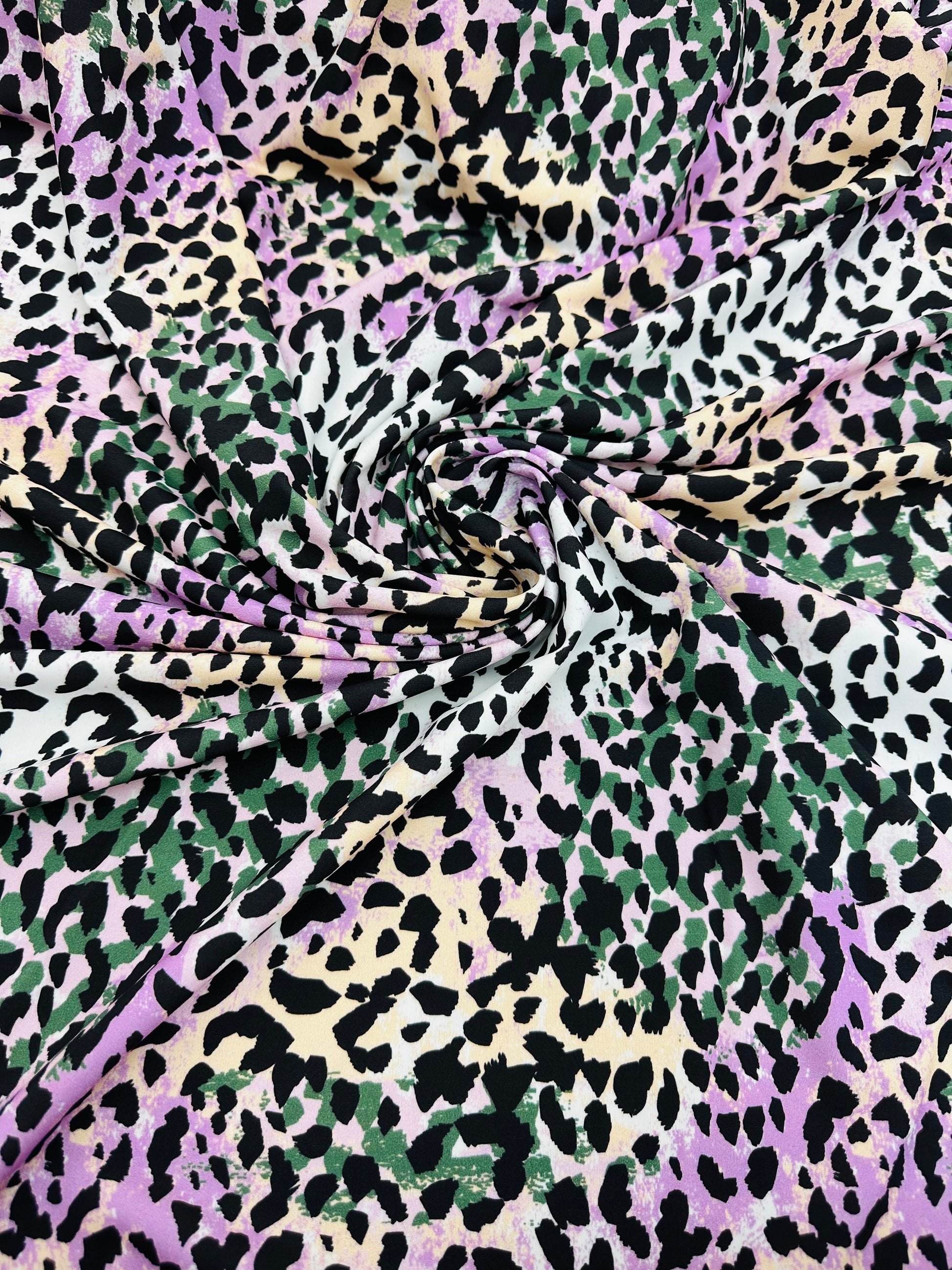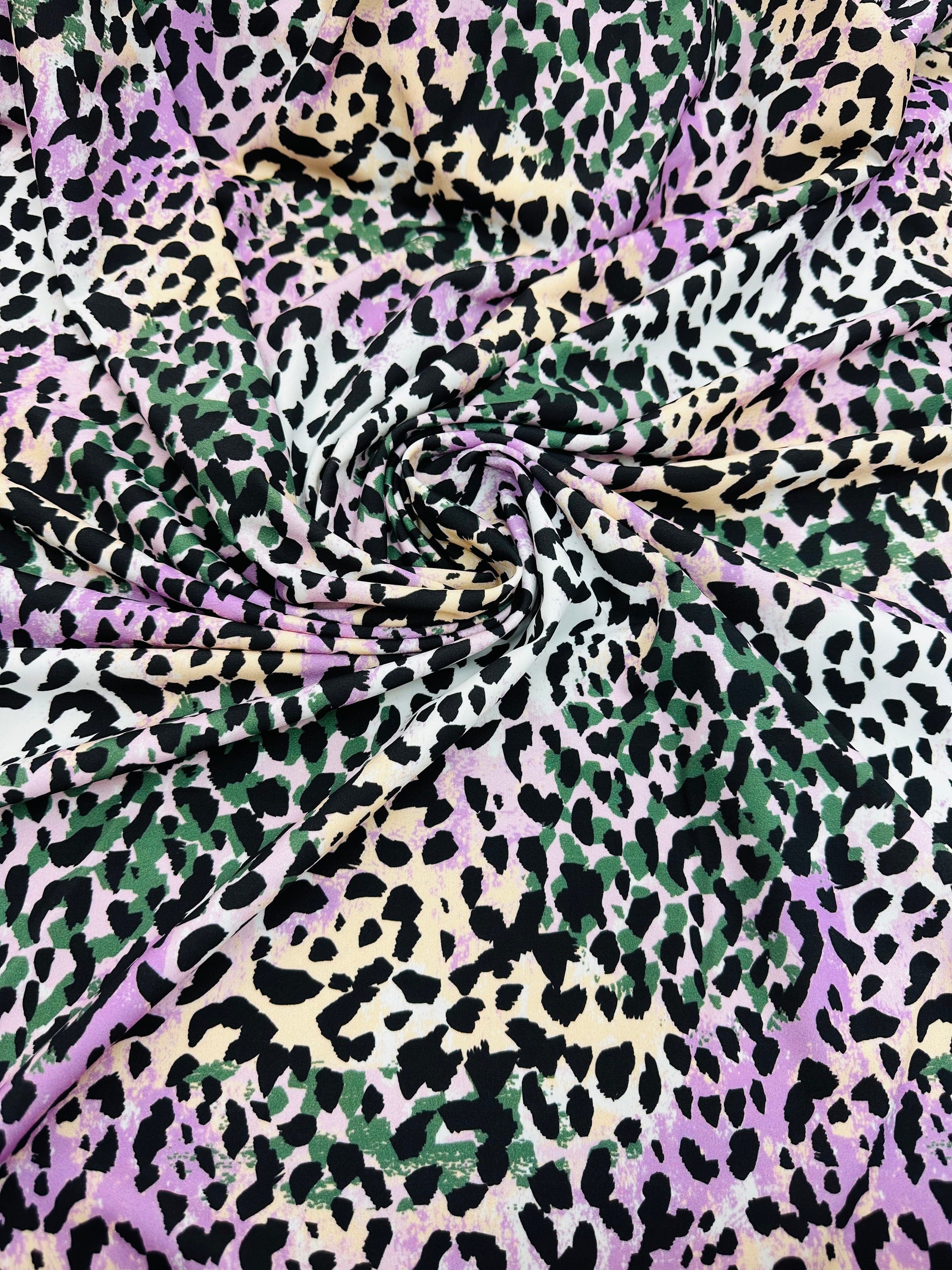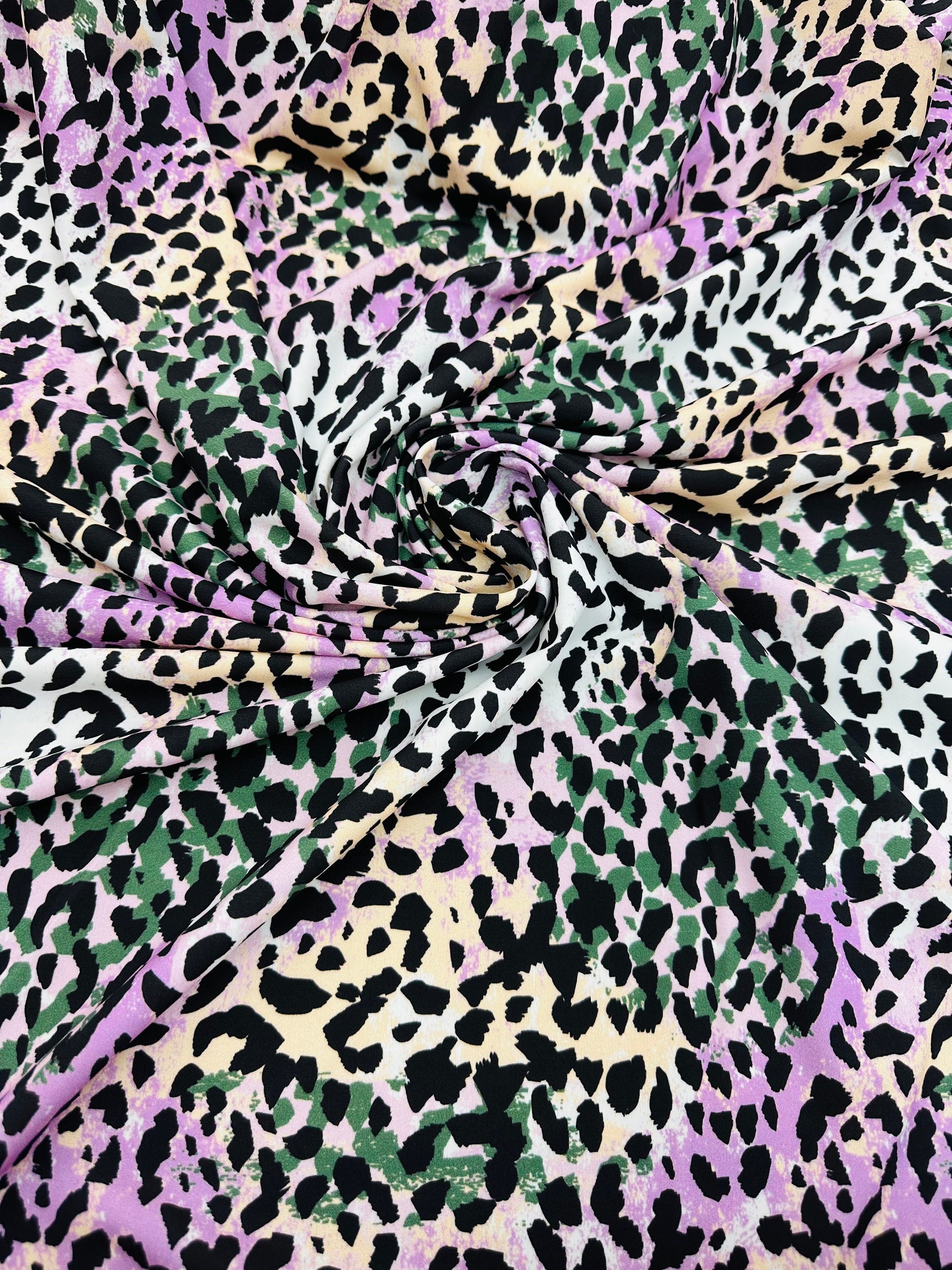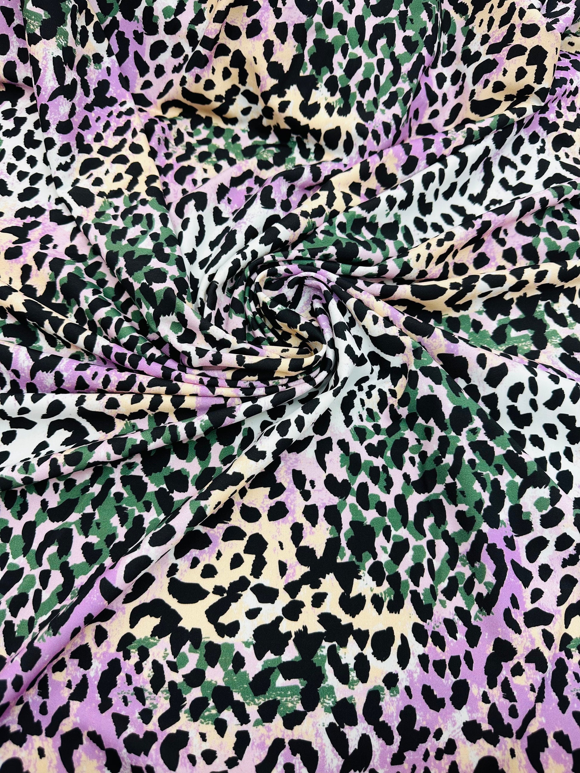 Exotic Leopard design multicolor nylon spandex 4-way stretch 58/60” Sold by the YD. Ships worldwide from Los Angeles California USA.