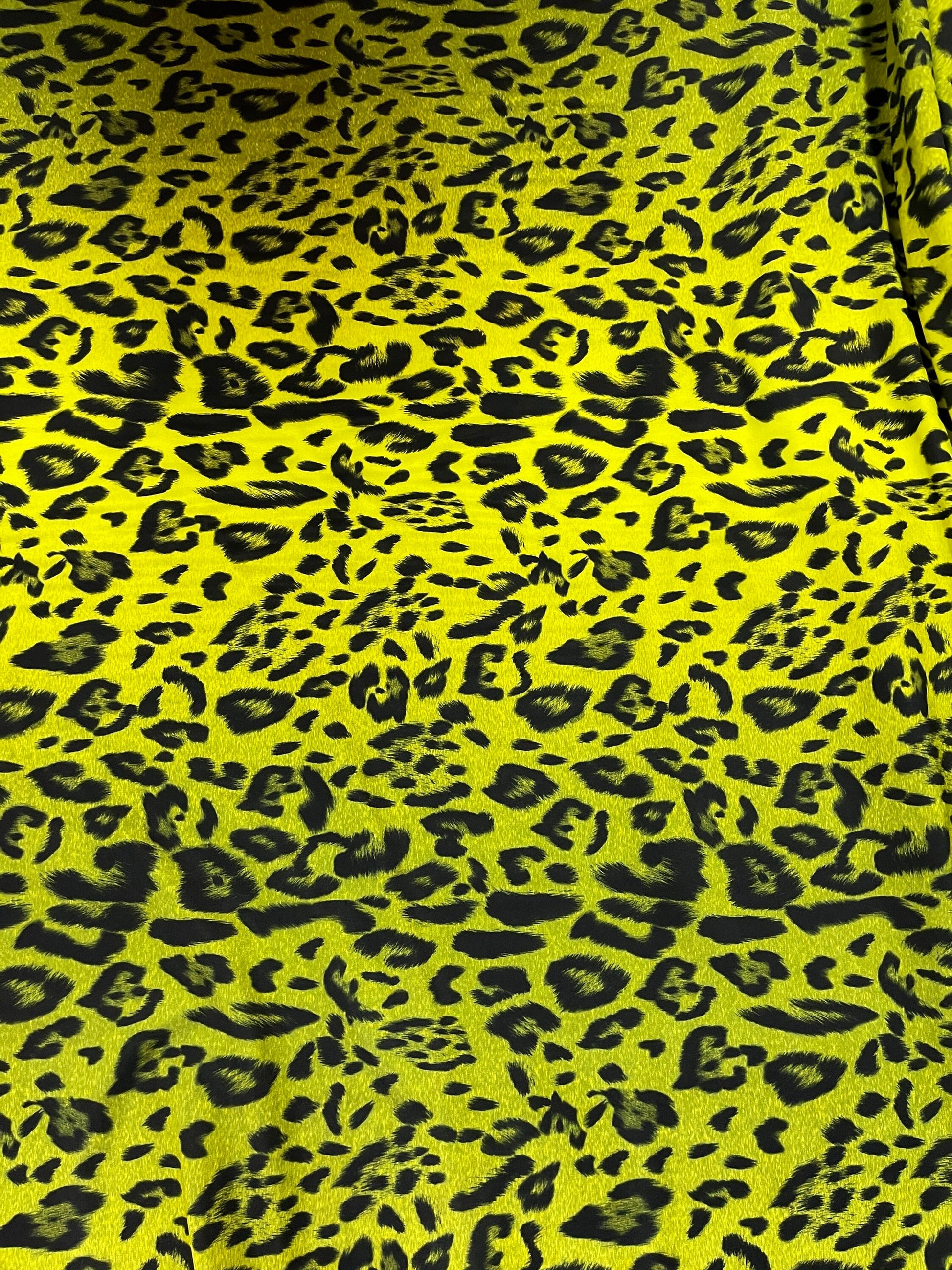 Exotic Leopard design print on ombre neon ye spandex 4-way stretch 58/60” Sold by the YD. Ships Worldwide from Los Angeles California USA.