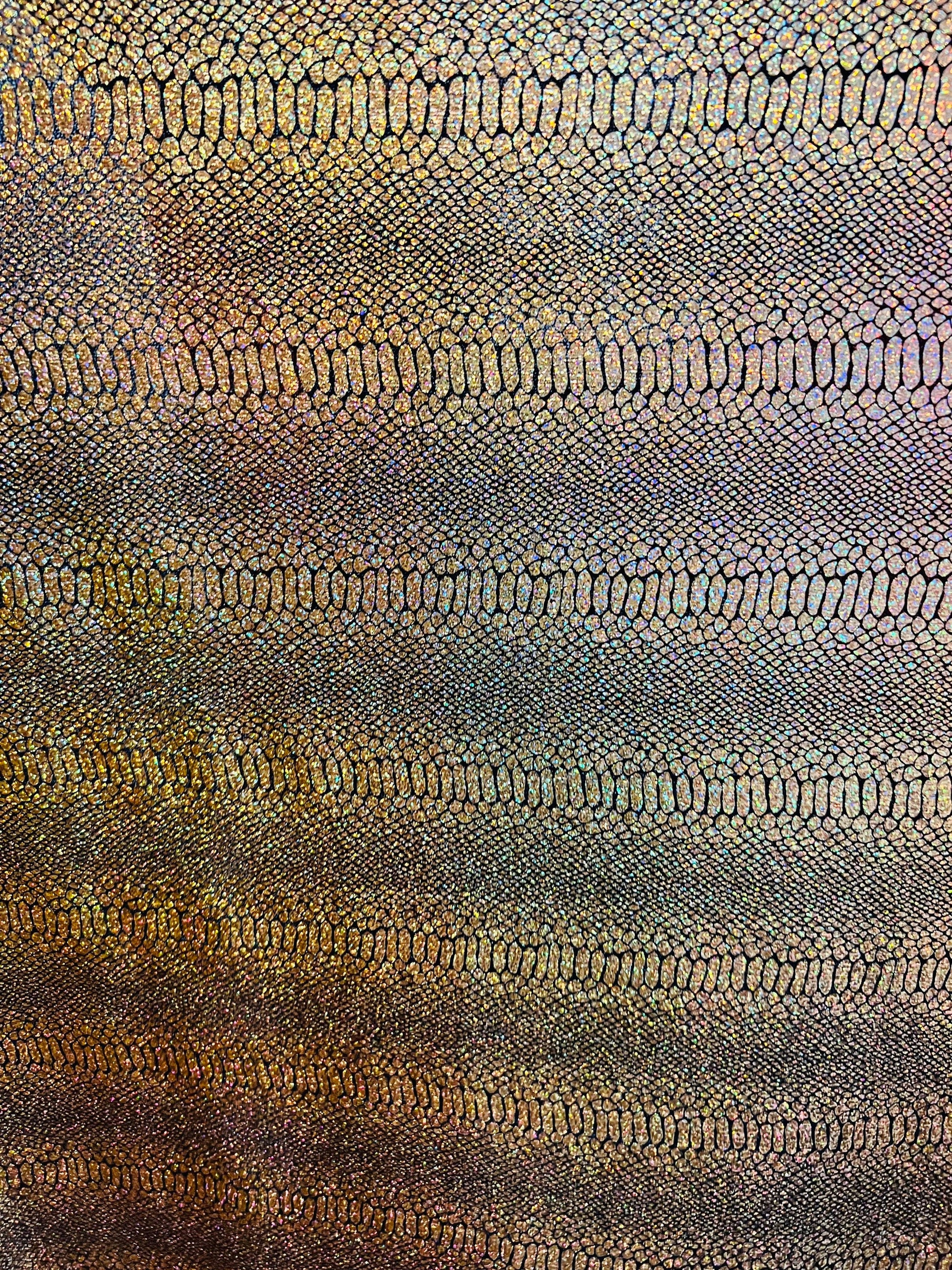 Exotic Snake design metallic poly spandex fabric 4-way stretch 58/60” Sold by the YD. Ships worldwide from Los Angeles California USA