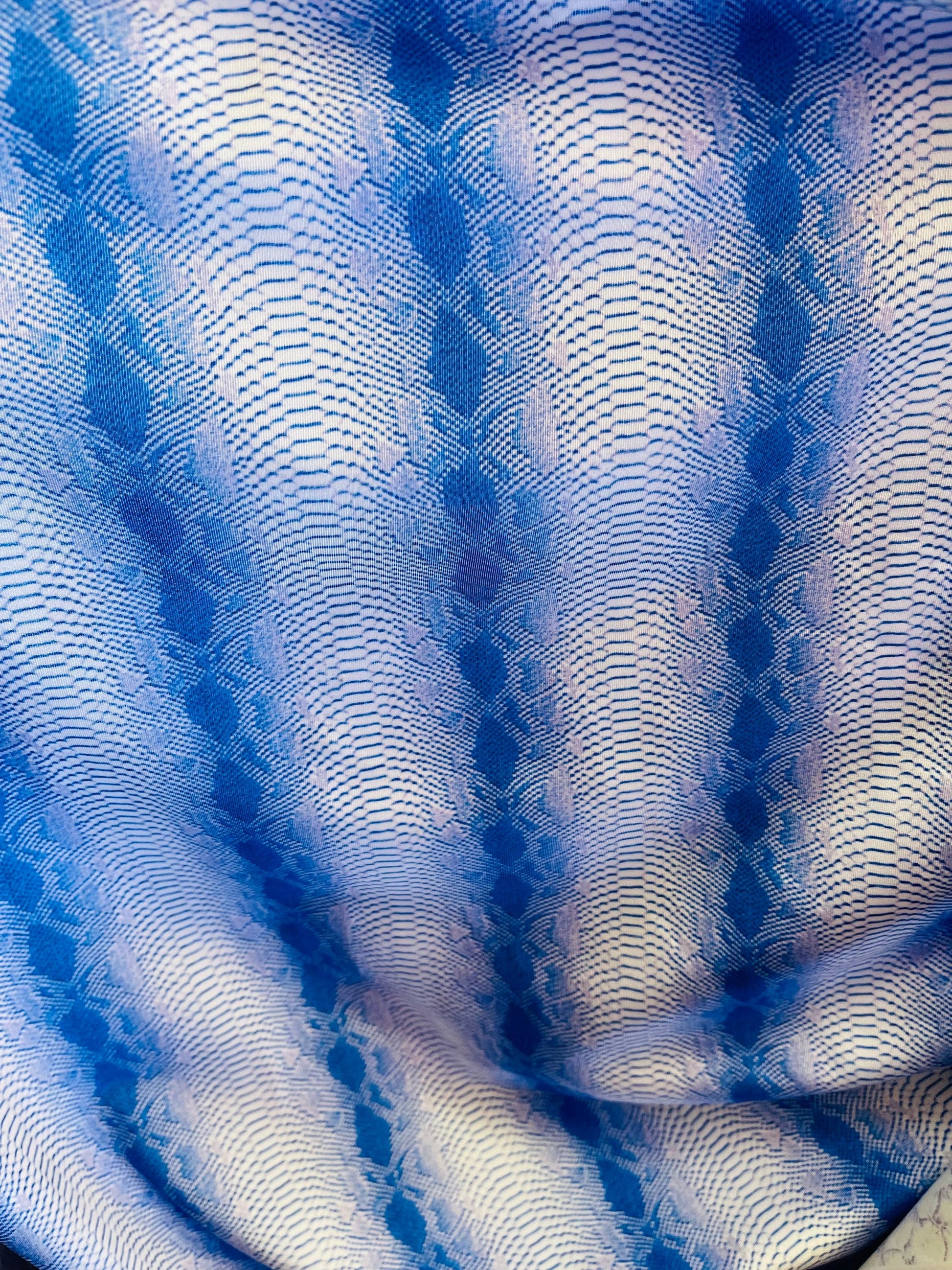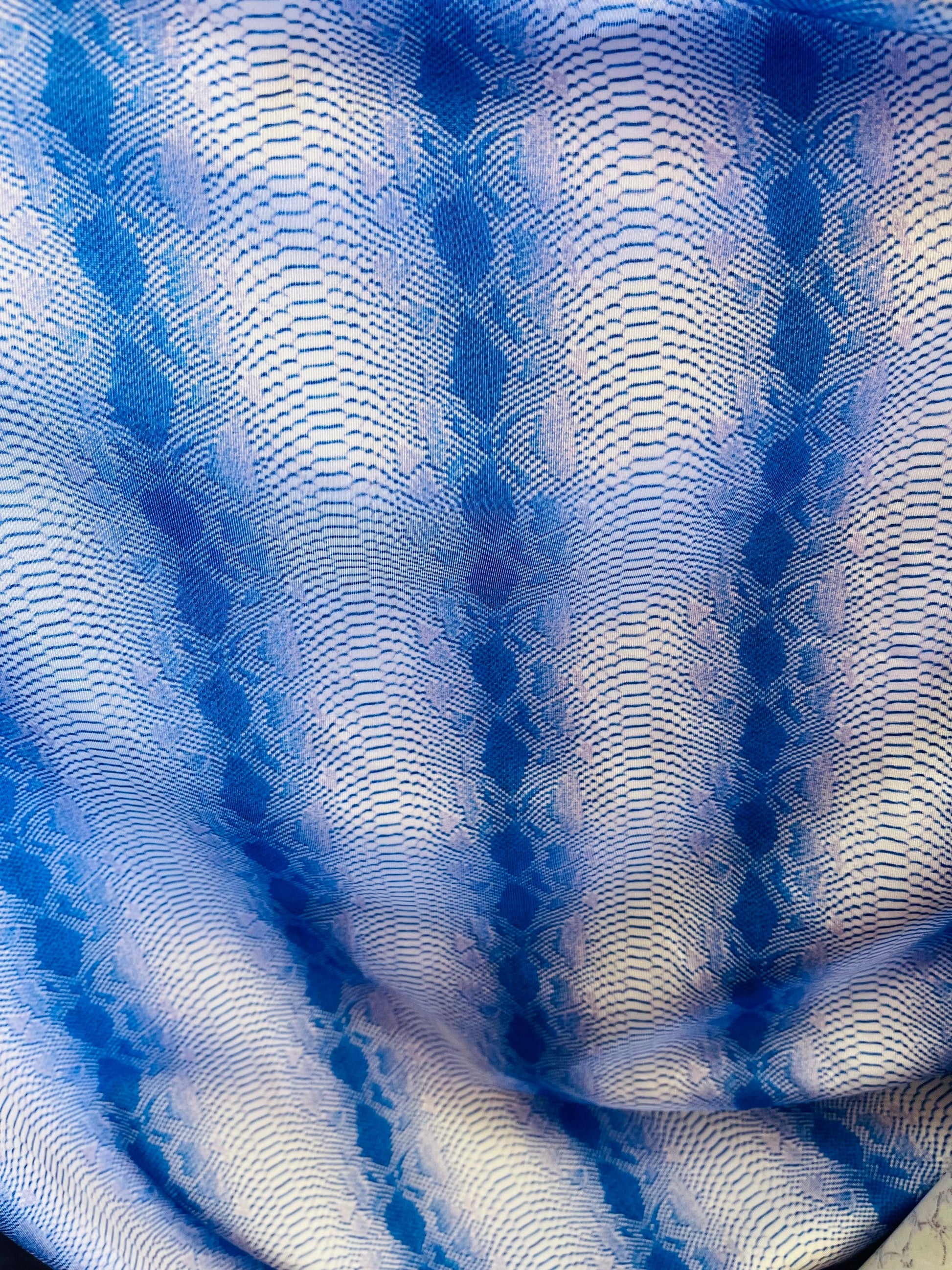Exotic snake design sapphire 2tone print on great quality of nylon spandex 4-way stretch 58/60” Sold by the YD. Ships Worldwide from Los Angeles California USA.