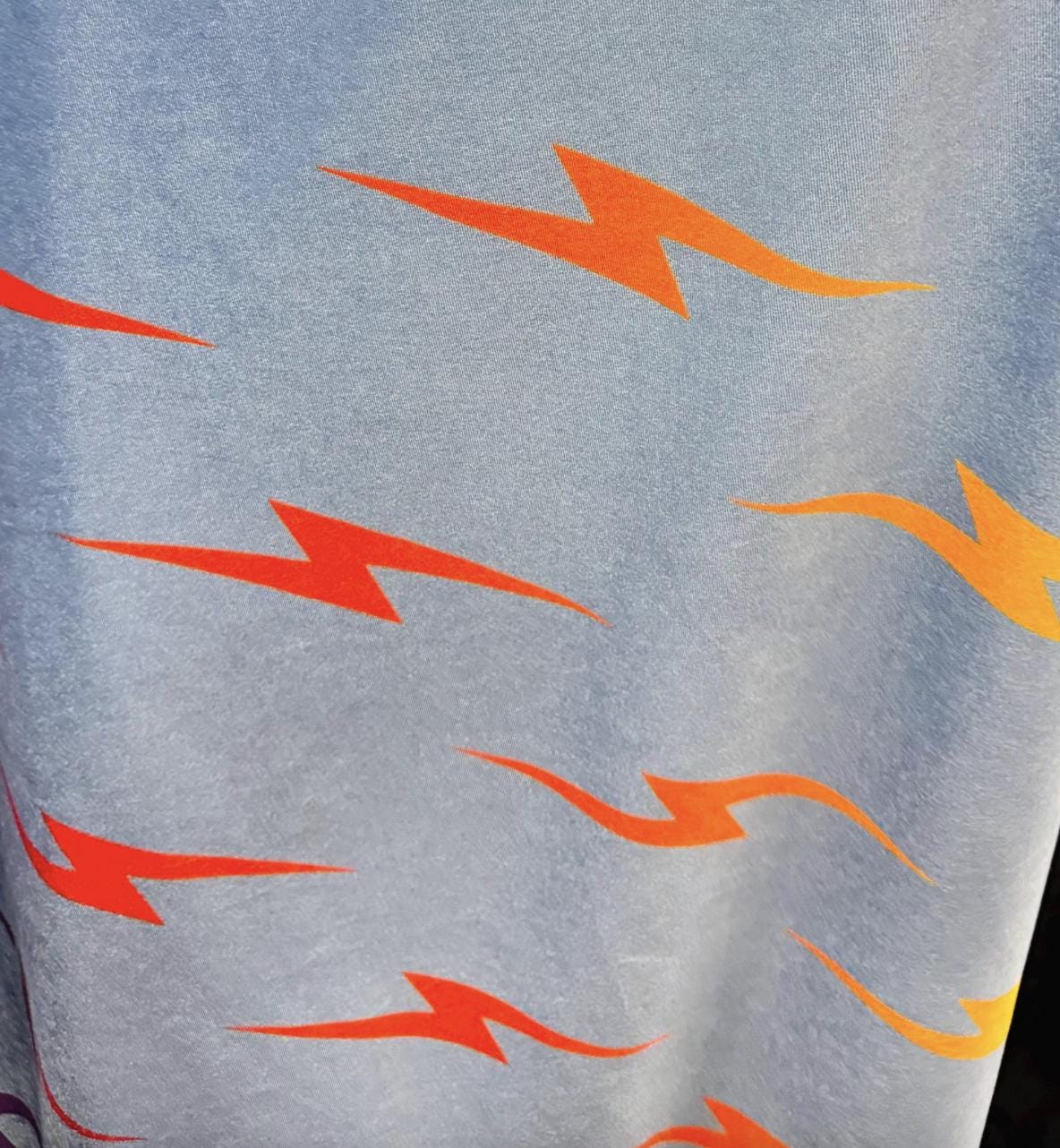 Flash design blue/red/yellow print on great quality of stretch velvet 4-way stretch 58/60” Sold by the YD. Ships Worldwide from Los Angeles