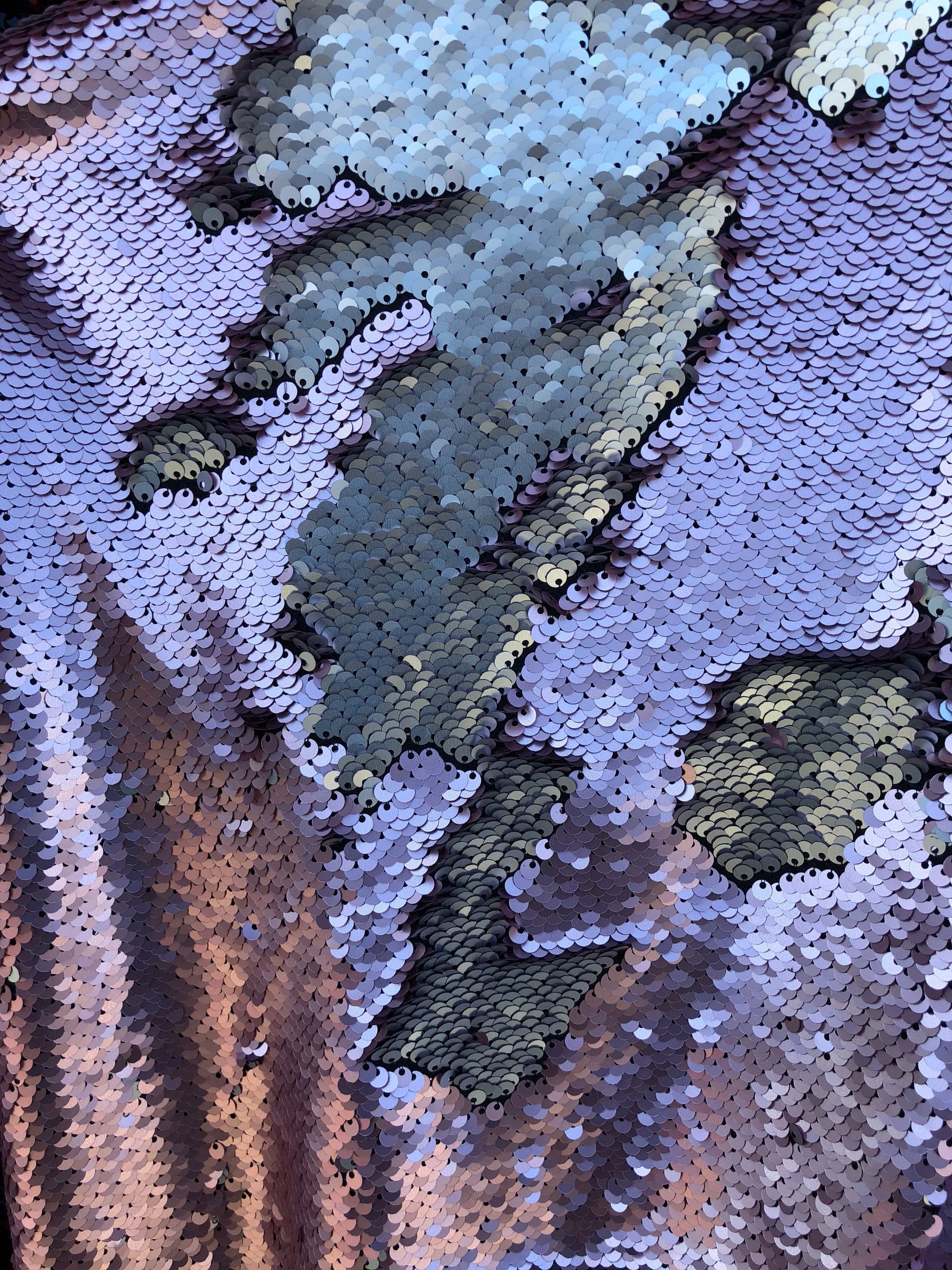 Flip up sequins reversible sequins 2 tone it comes on spandex base 2way Stretch 58/60" Sold by the YD. Ships worldwide from Los Ángeles CA
