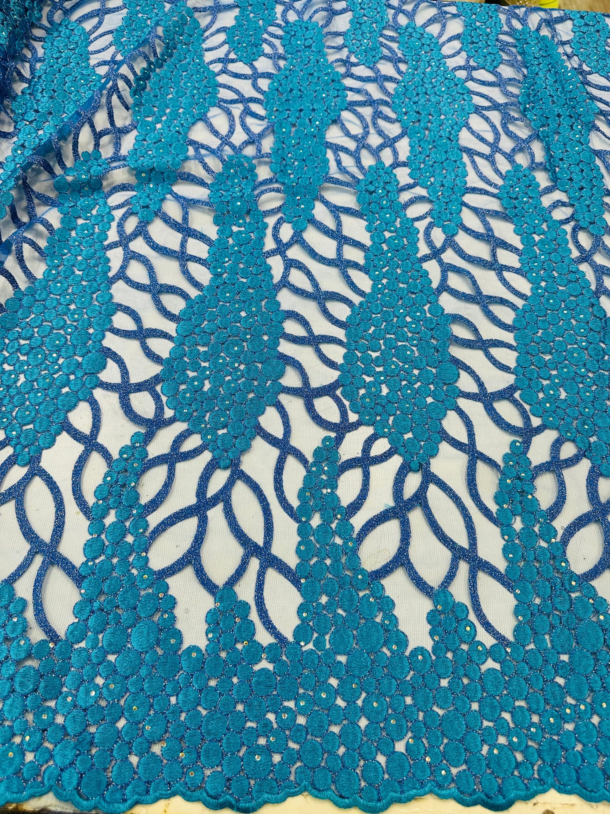 France lace peacock design embroidered high quality lace 2-way stretch 50/52” Sold by the YD. Ships worldwide from Los Angeles California USA