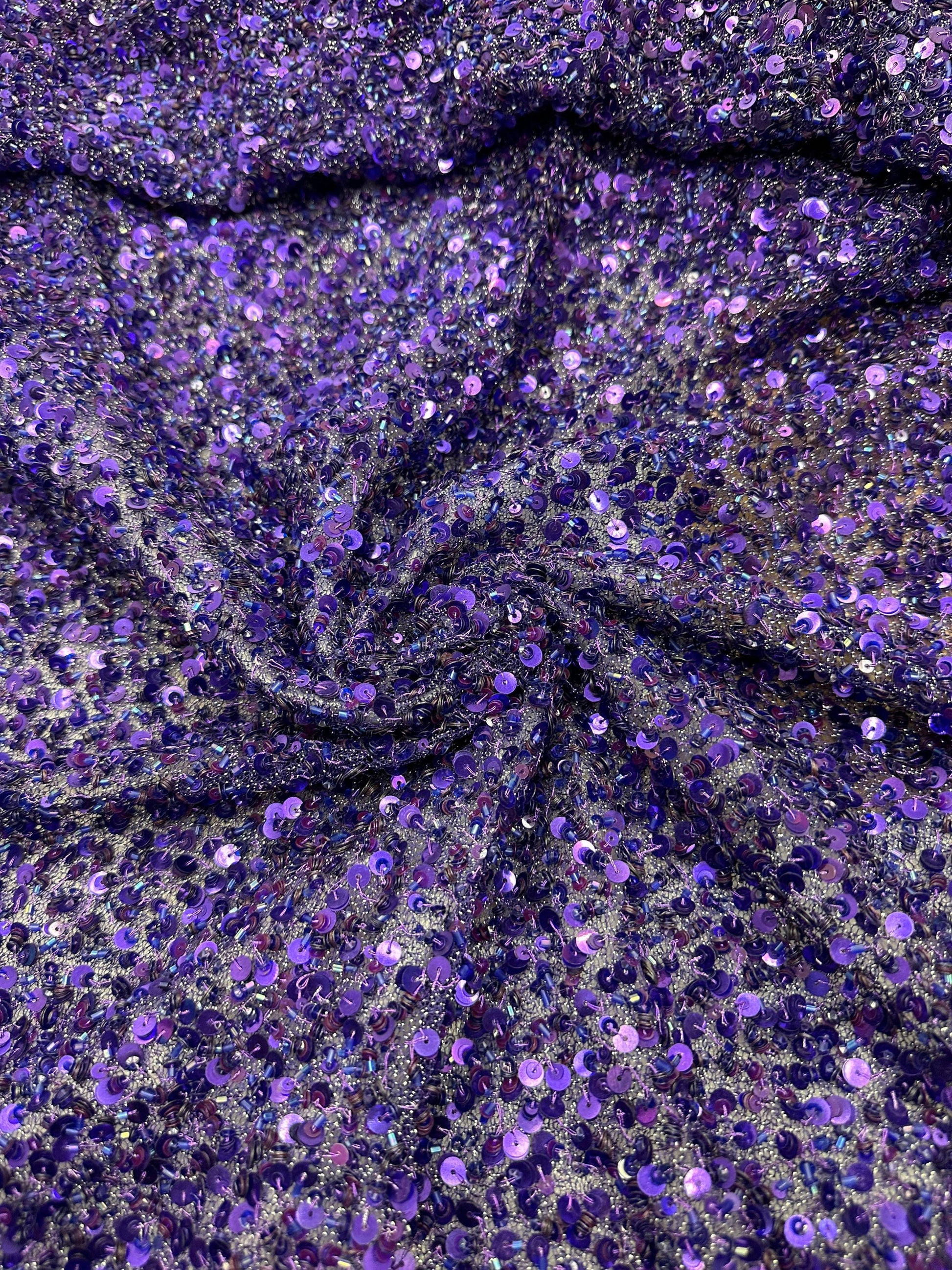 France luxury sequins and beaded lace on stretch silky mesh 2-way stretch high quality fabric for elegant dresses and fashion apparel Sold by the YD. 50/52” Ships worldwide from Los Angeles California USA