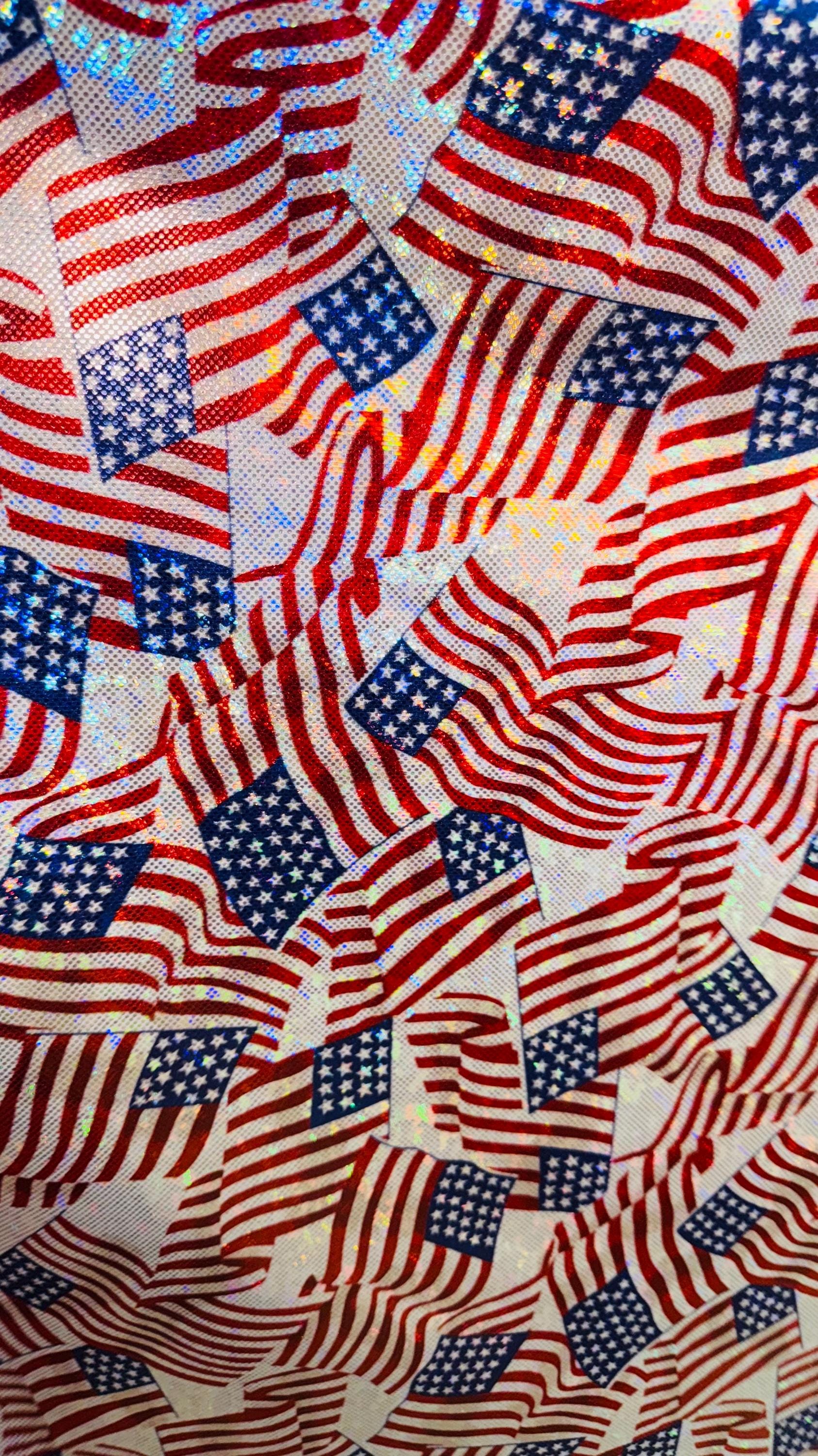 Freedom American Flag design on metallic shattered glass hologram nylon spandex 4-way stretch 58/60” High quality fabrics by AlexLAFabrics