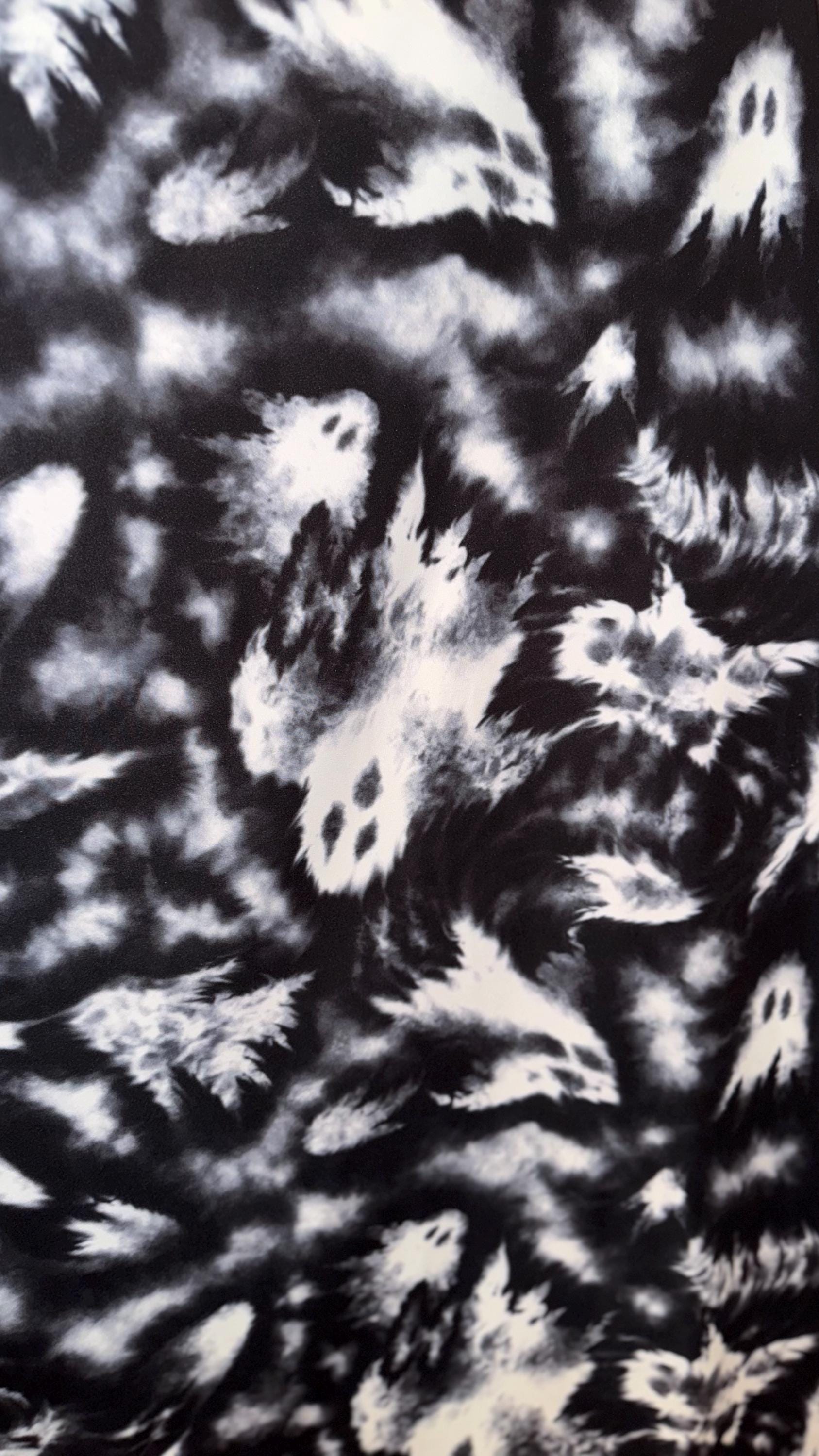 Ghost design print on best quality of nylon spandex and power mesh nylon spandex 4-way stretch 58/60” Sold by the YD. Ships worldwide