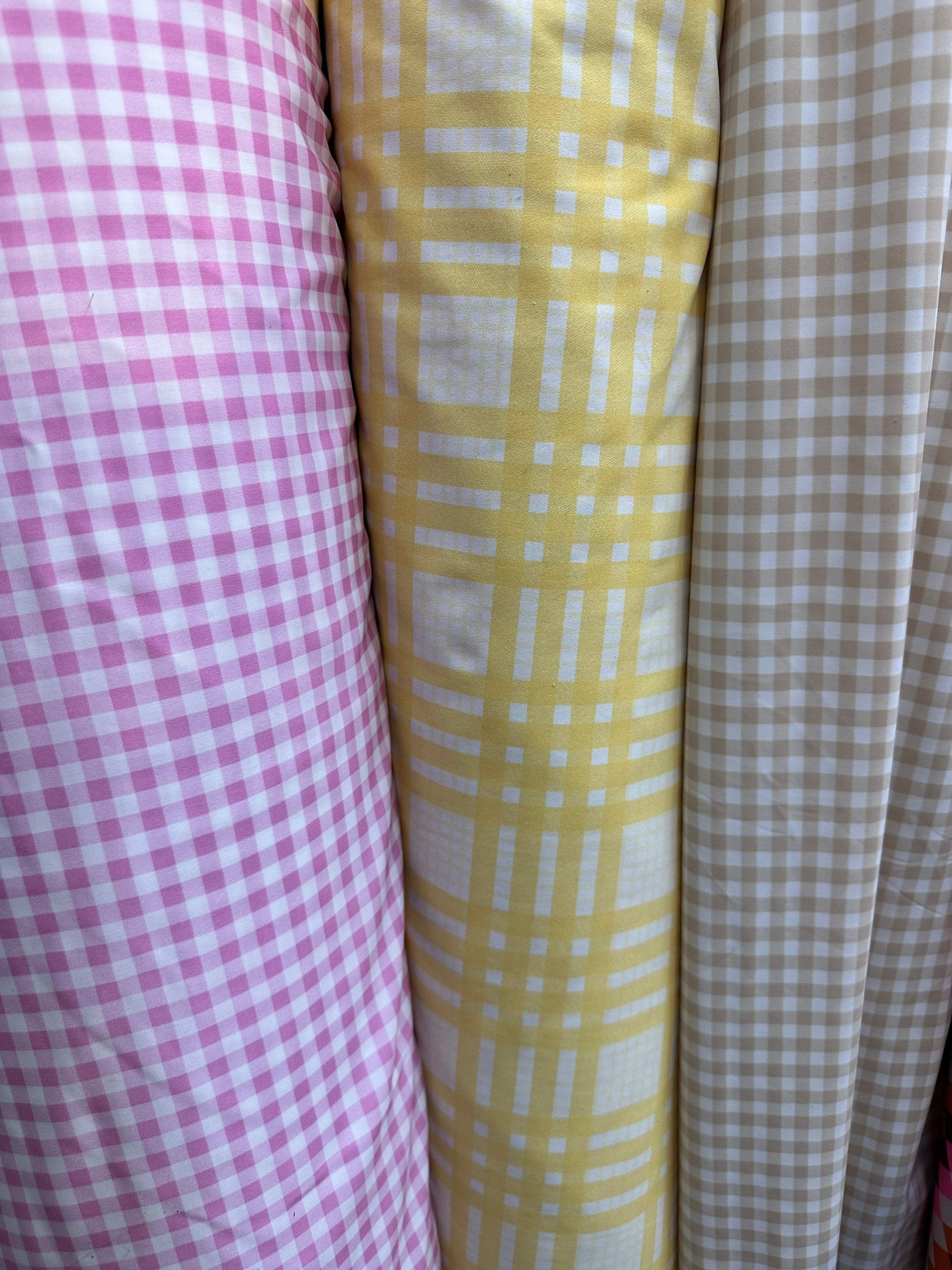 Gingham design print on great quality of nylon spandex 4-way stretch 58/60” Sold by the YD. Ships worldwide from Los Angeles California USA